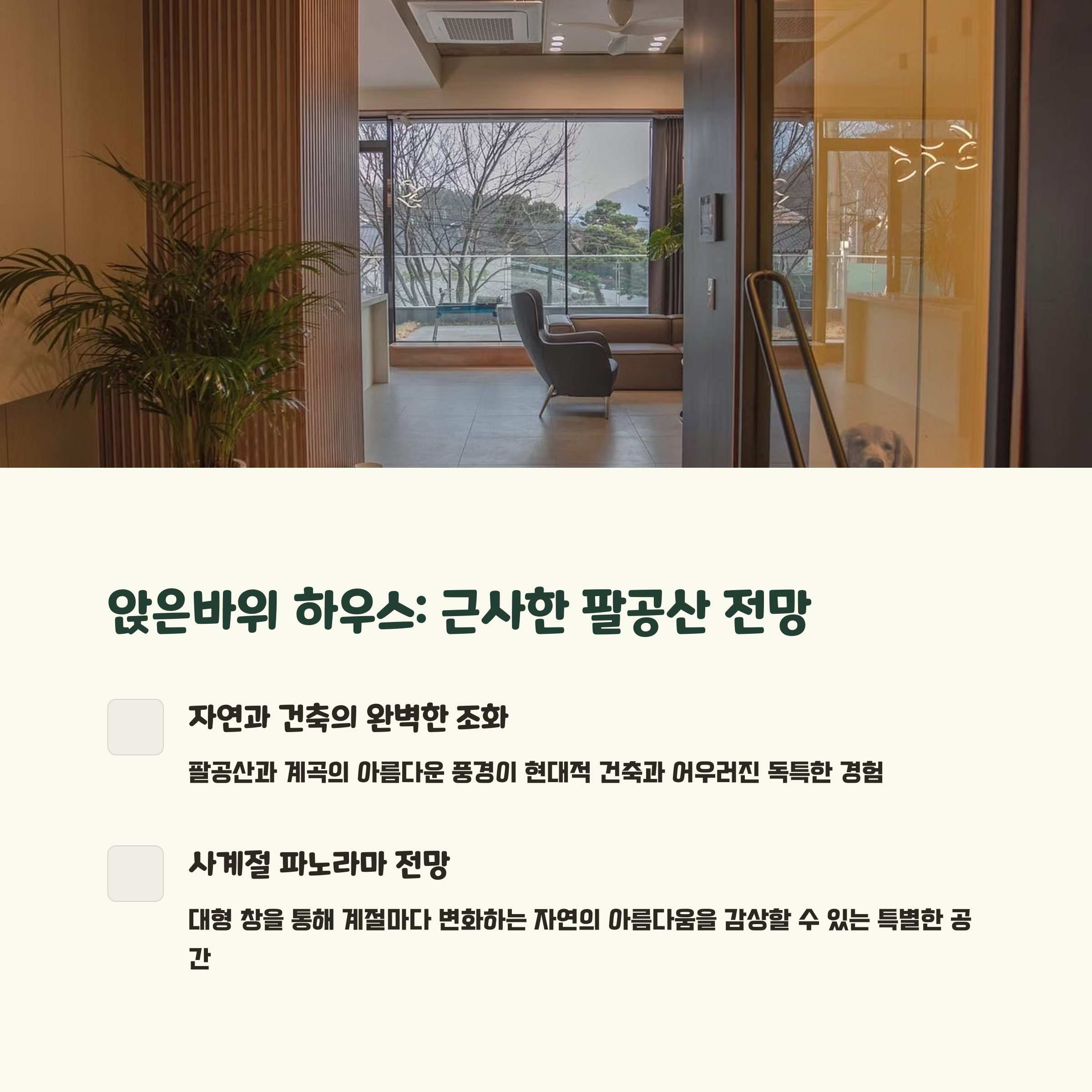 앉은바위하우스 | 팔공산 전망, 감각적 인테리어, 프라이빗 감성 숙소, 고요한 힐링 |