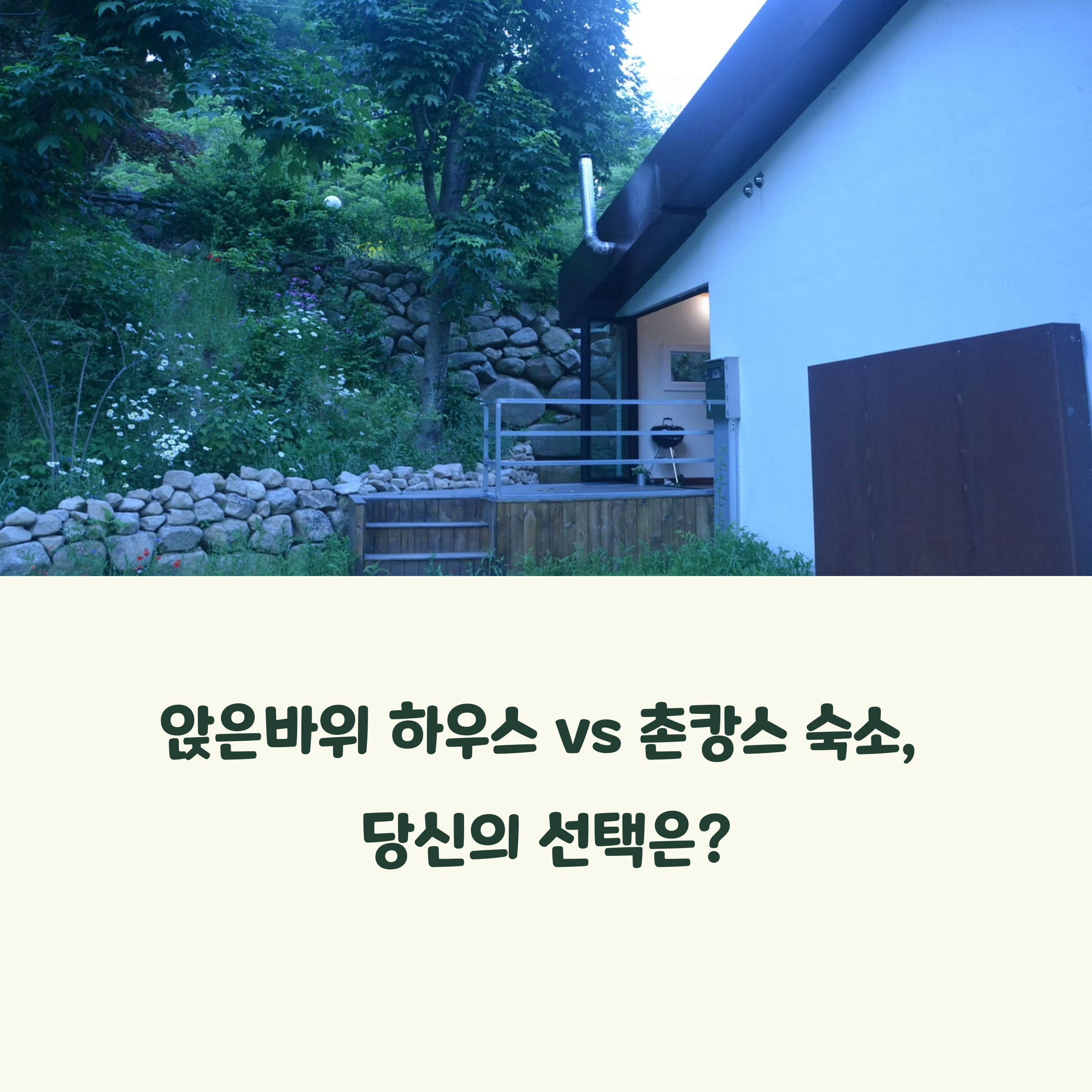 조용하고 고급스러운 감성, 프라이빗 휴식을 원한다면 단연 앉은바위하우스가 더 어울립니다. 반면 정겨운 분위기 속에서 가족·친구들과 따뜻한 시간을 보내고 싶다면 촌캉스 숙소가 만족도를 높여줄 것입니다. 여행 스타일과 함께하는 사람에 따라 현명하게 선택해보세요!