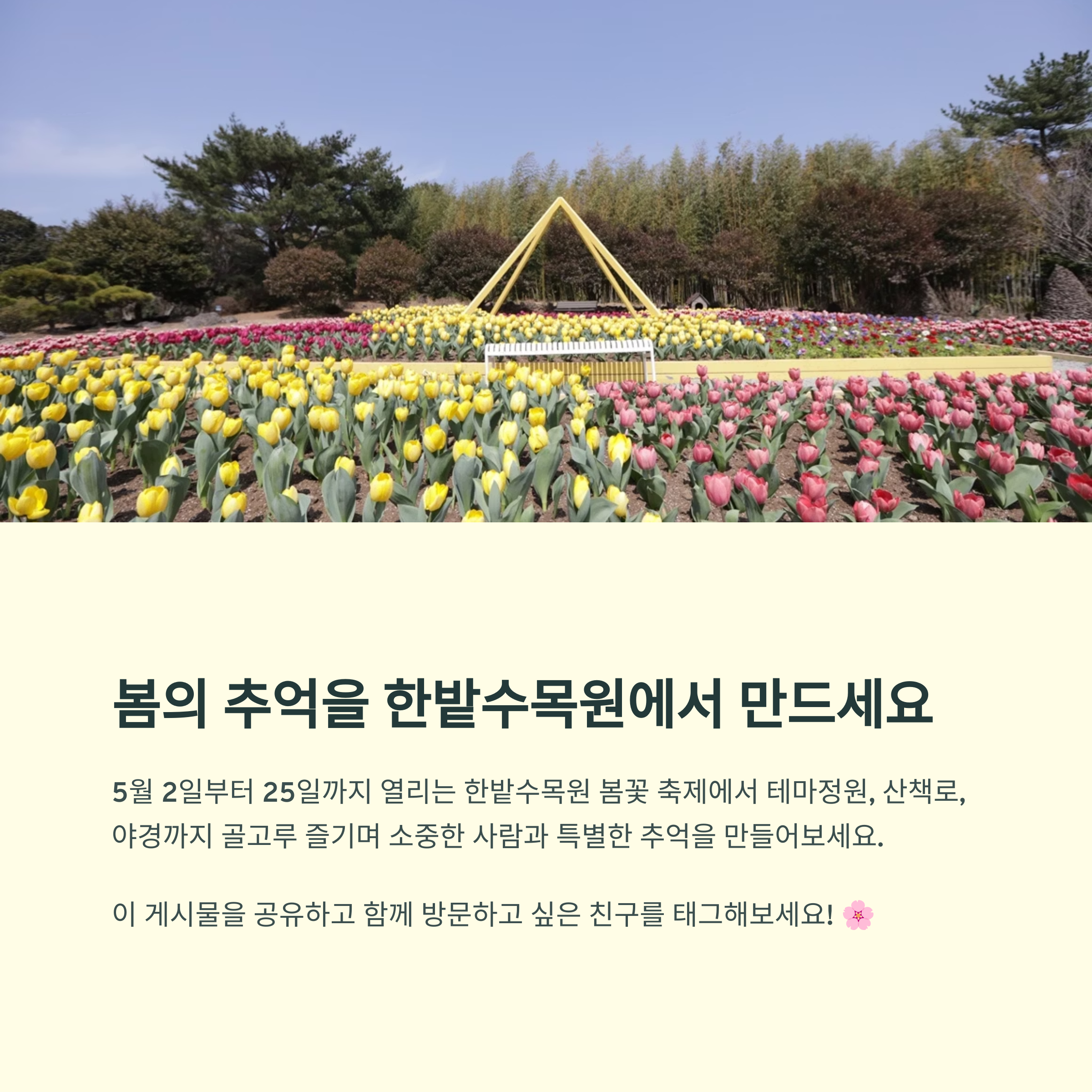 | 봄꽃 축제 기간 | 2025년 5월 2일 ~ 25일, 한밭수목원 일원 |