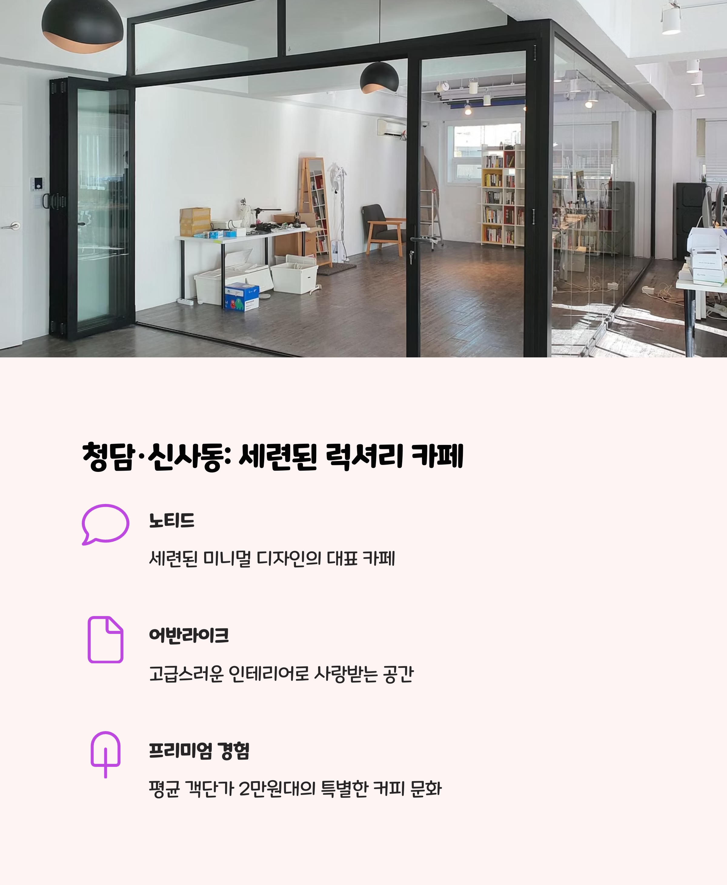 | 성수동 카페 | 연남·익선 감성 | 청담·을지로 스타일 |