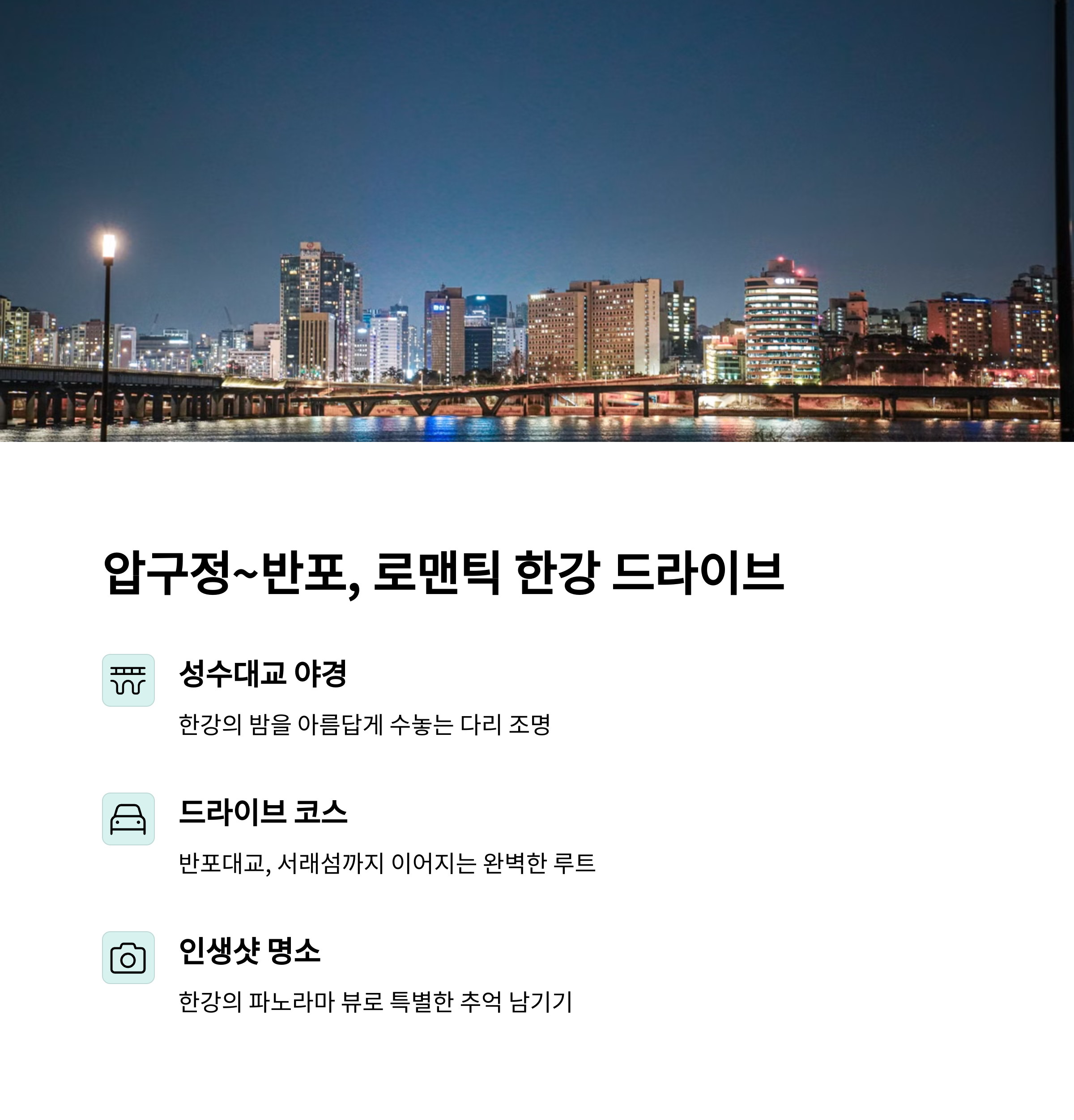 | 한강 드라이브 | 서울숲 데이트 | 감성 핫플 |