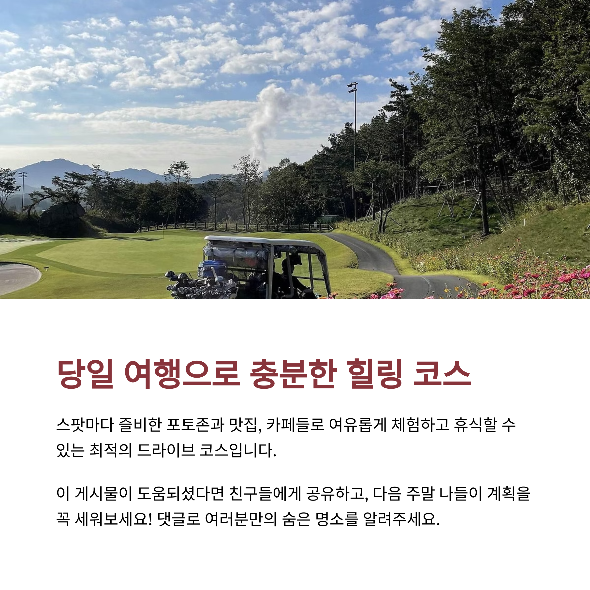 여러분이 가장 좋아하는 파주 또는 포천 명소는 어디인가요? 혹은 추천하고 싶은 드라이브 루트가 있다면 댓글로 공유해주세요. 함께 더 좋은 여행을 만들어가요!