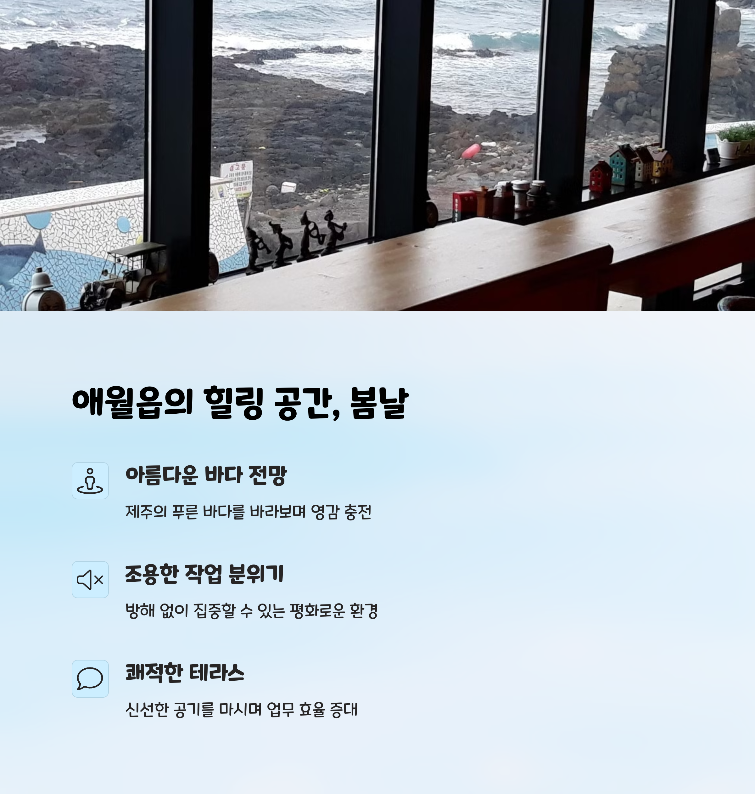 | 와이파이 빠른 조용한 작업 공간 | 애월 바다뷰, 감성 인테리어 | 아라동 조용한 카페 거리 |