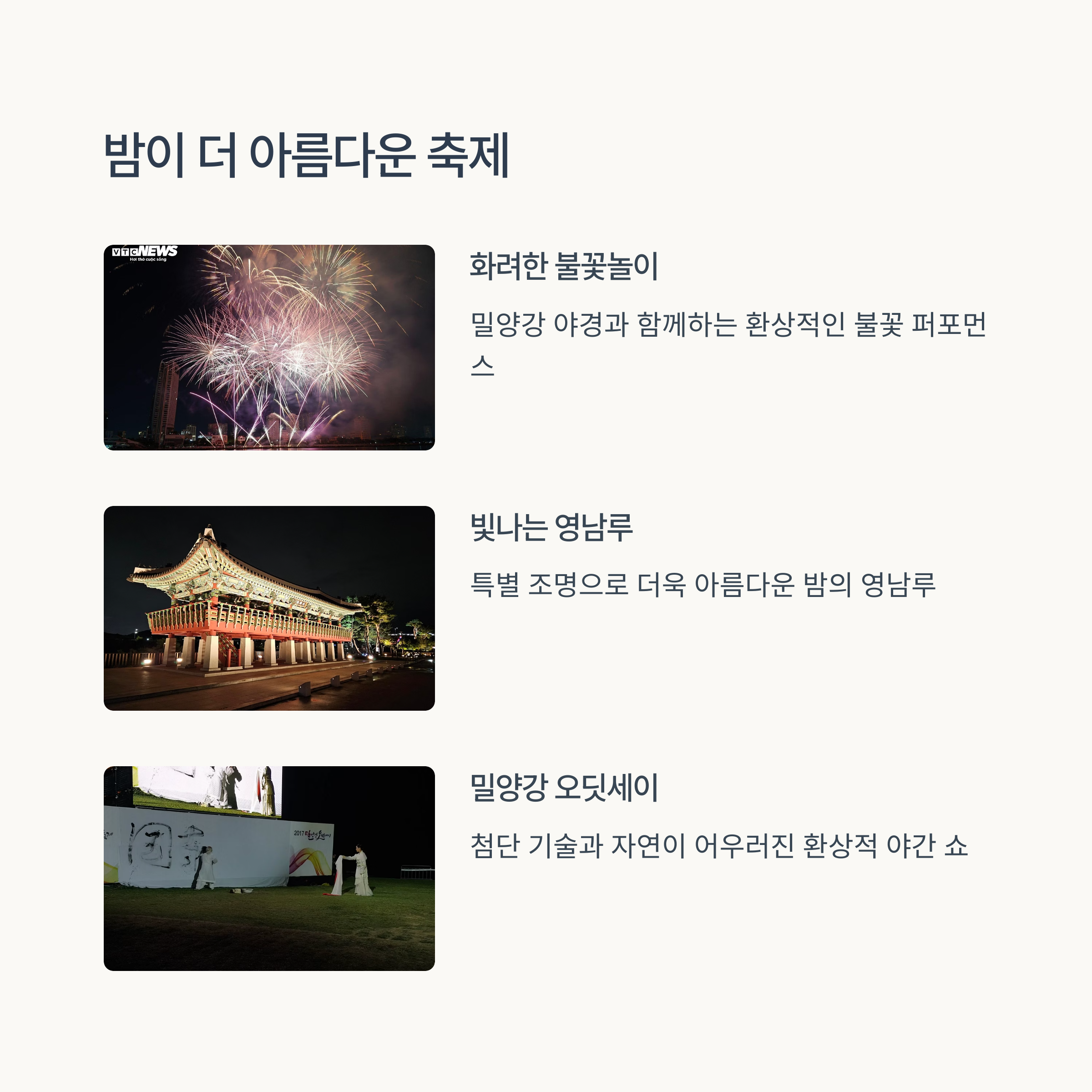 | 밀양가볼만한곳 | 전통야간공연 | 야간불꽃놀이축제 |