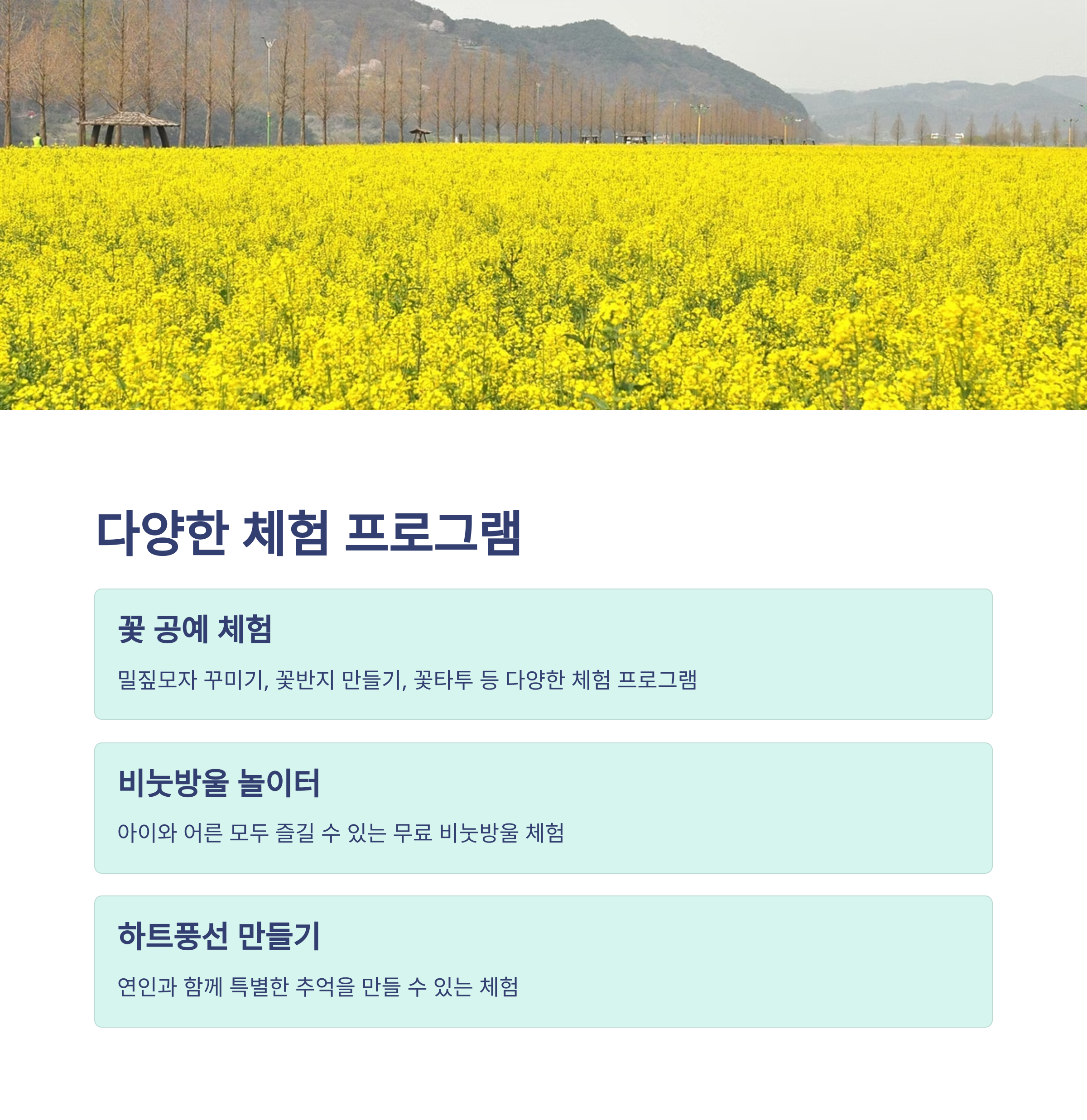유채꽃 축제에 대한 여러분의 경험이나, 추천하고 싶은 봄 나들이 장소가 있다면 댓글로 남겨주세요. 함께 나누는 정보가 더 풍성한 봄날을 만들어줍니다!
