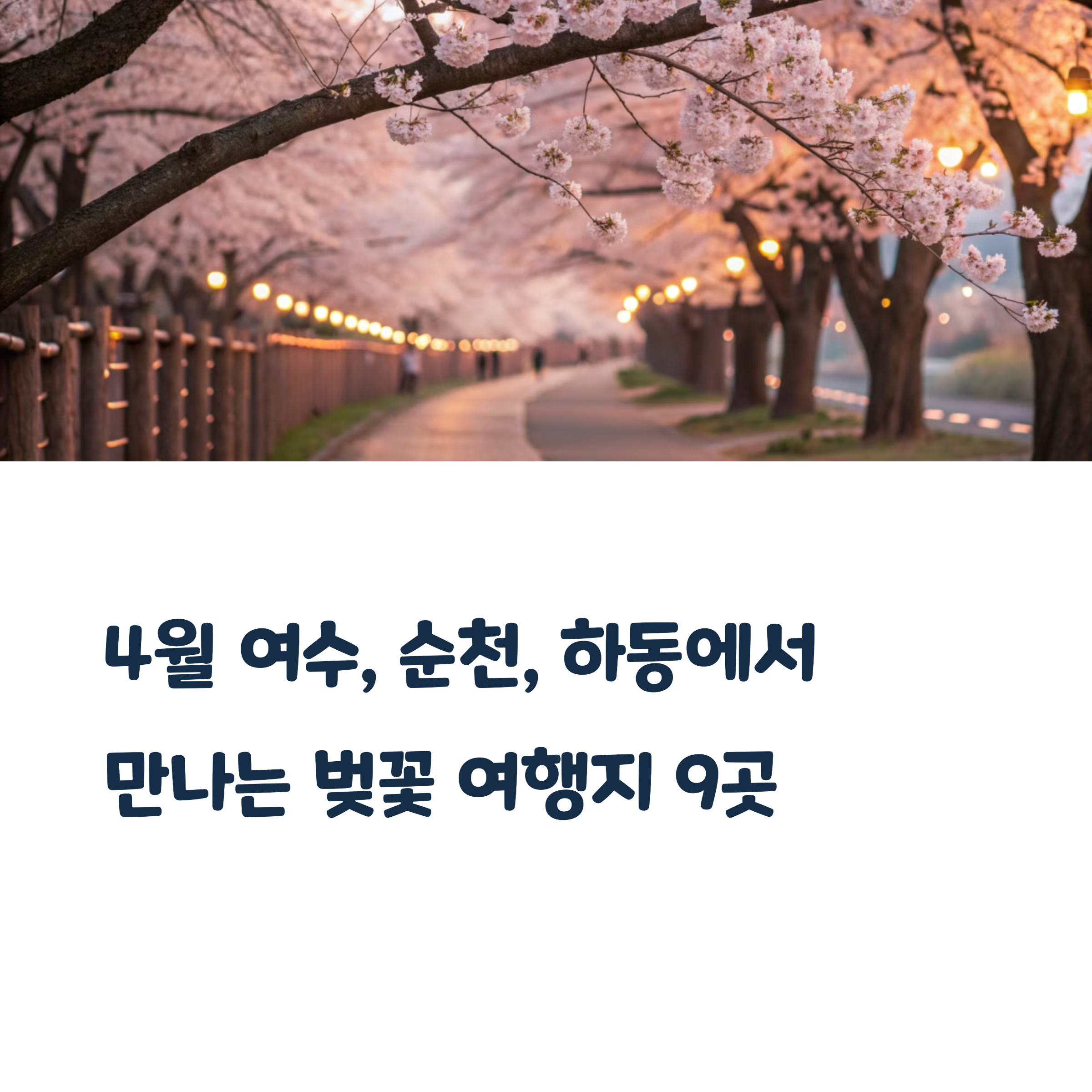 안녕하세요, 여행을 사랑하는 여러분! 4월이면 전국 곳곳에서 벚꽃이 만개하는데요, 특히 여수, 순천, 하동은 벚꽃과 어우러진 아름다운 명소가 많아 많은 여행객들이 찾는 곳입니다. 여수 승월저수지, 순천 장대공원, 하동 횡천교 등 각 지역의 대표적인 벚꽃 명소를 한곳에 모아 소개해 드릴게요. 벚꽃과 함께 잊지 못할 4월 여행을 계획해보세요!
