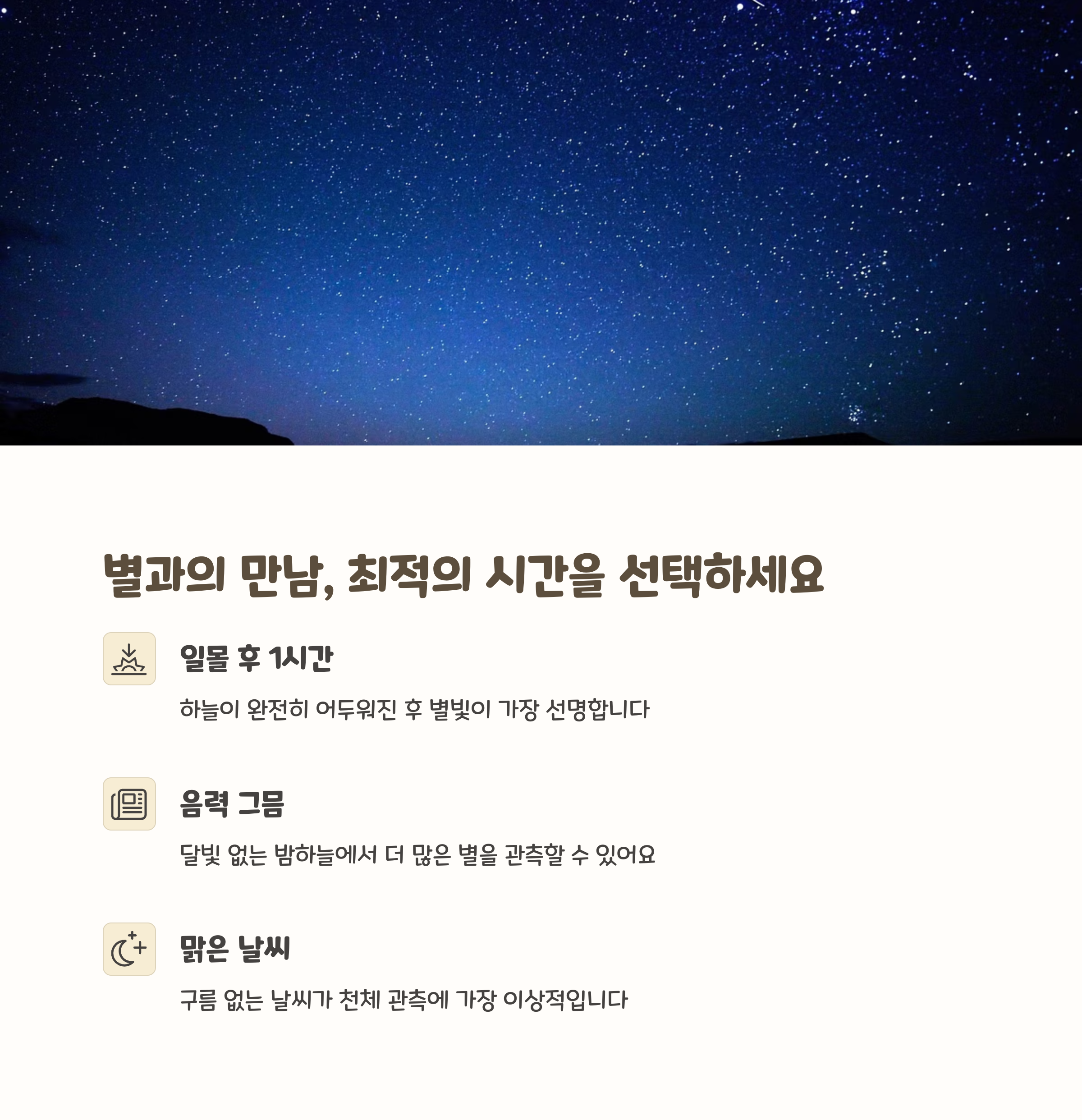 밤하늘 여행, 별 관측에 최적화된 시간과 팁 총정리