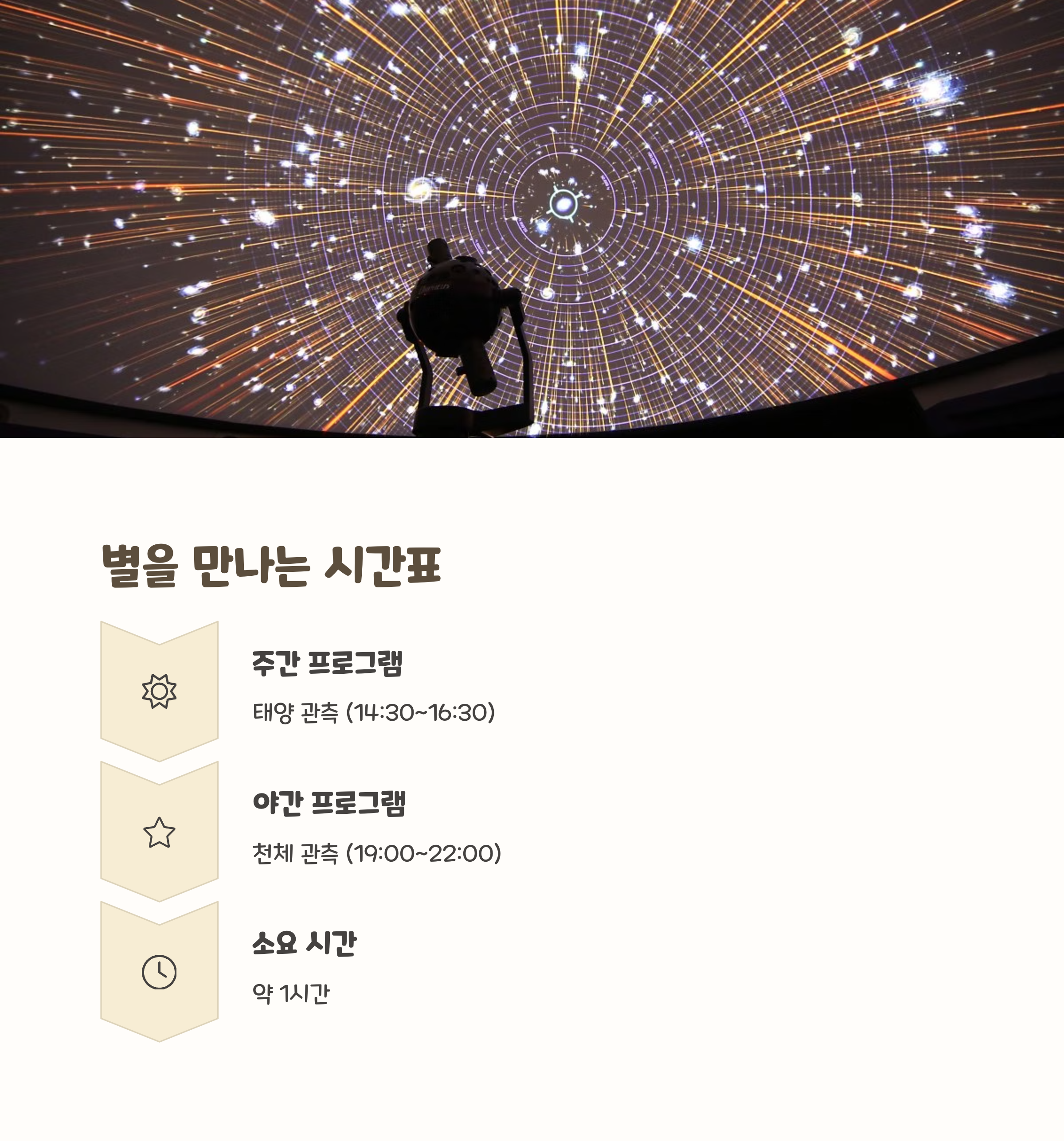 | 별 관측 시간 | 음력 그믐 | 셔틀버스 탑승 |