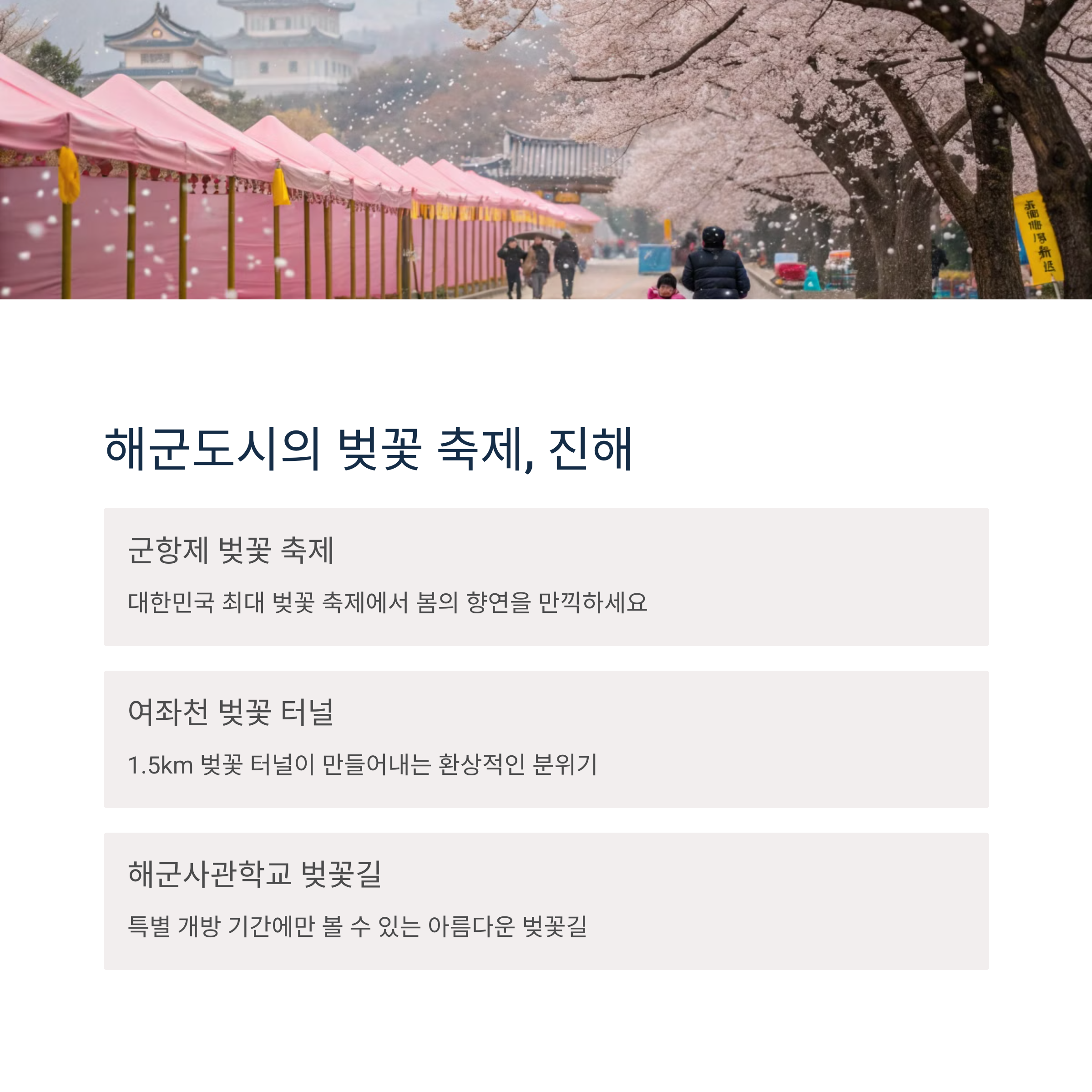 여행을 더욱 즐겁게 만들어줄 봄꽃 축제도 함께 알아보세요!