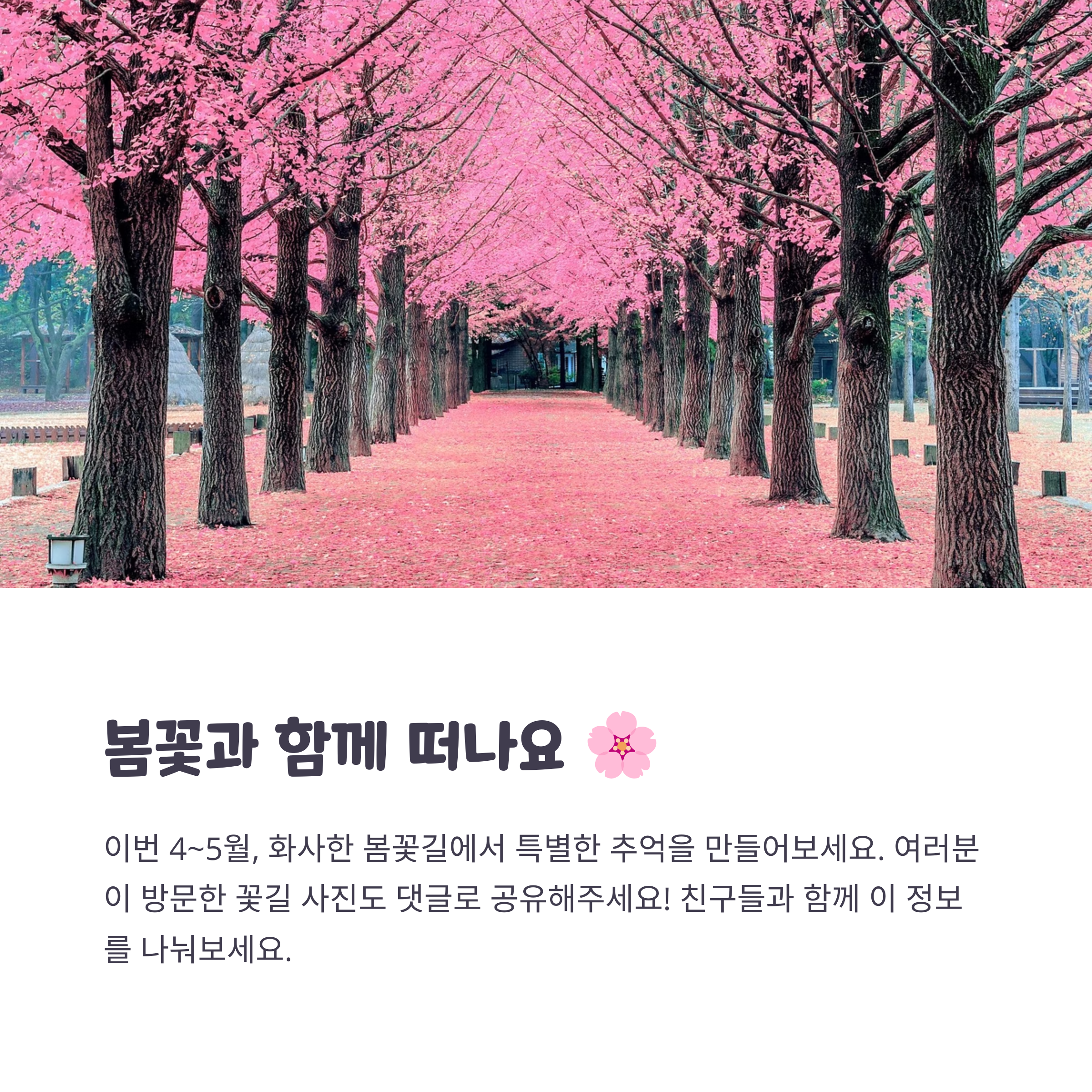 여러분이 다녀온 봄꽃 드라이브 명소가 있다면 댓글로 추천해주세요! 직접 찍은 사진이나 팁도 공유해주시면 다른 독자들에게도 많은 도움이 될 거예요 :)