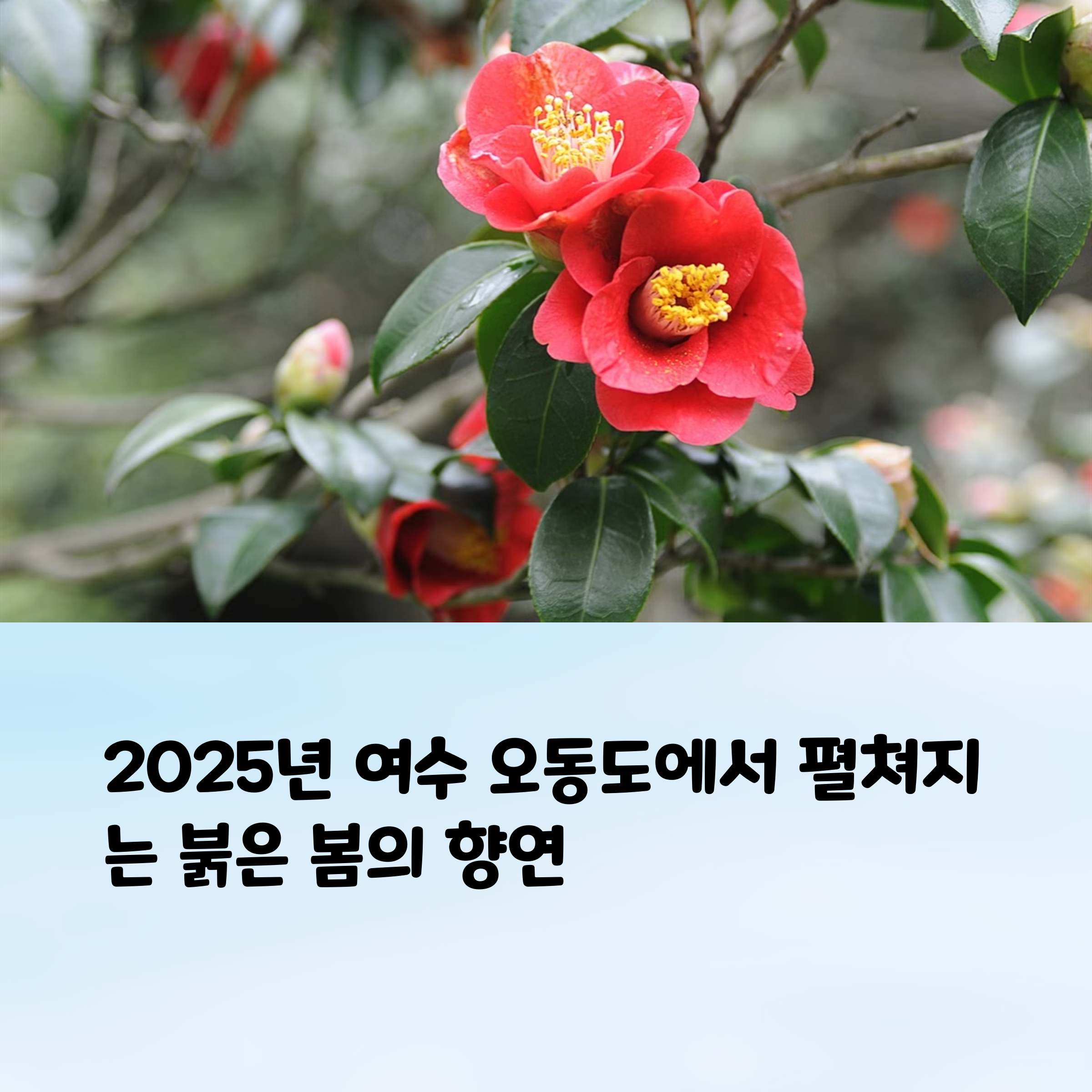 남쪽에서 먼저 피어나는 봄꽃 중 하나인 동백꽃. 그 대표 명소 중 하나가 바로 여수 오동도입니다. 2025년 오동도의 동백은 3월 중순부터 말까지 절정을 이루며, 4월 초까지도 붉은 꽃잎이 섬을 수놓습니다. 약 5,000그루 이상의 동백나무가 군락을 이루는 이곳은 붉은 꽃터널과 해안 산책로가 어우러져 한 폭의 수채화 같은 봄 풍경을 선사합니다. 걷기 좋은 계절, 바다와 꽃을 동시에 즐길 수 있는 오동도로 봄날의 특별한 산책을 떠나보세요.