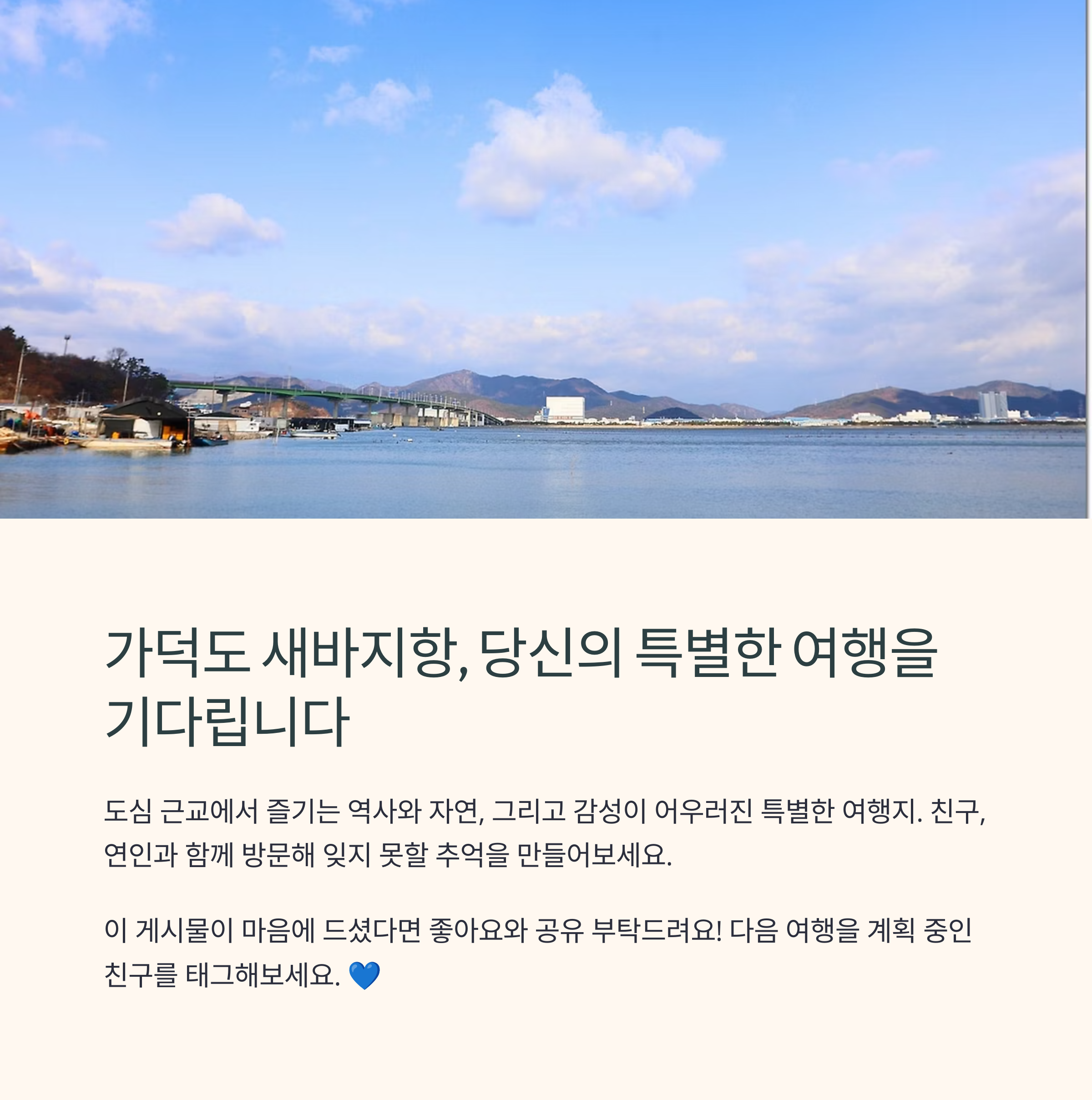 가덕도에 다녀오신 적이 있으신가요? 기억에 남는 풍경이나 숨은 포인트가 있다면 댓글로 공유해주세요. 함께 나누는 정보가 또 다른 여행자의 좋은 길잡이가 될 수 있습니다!