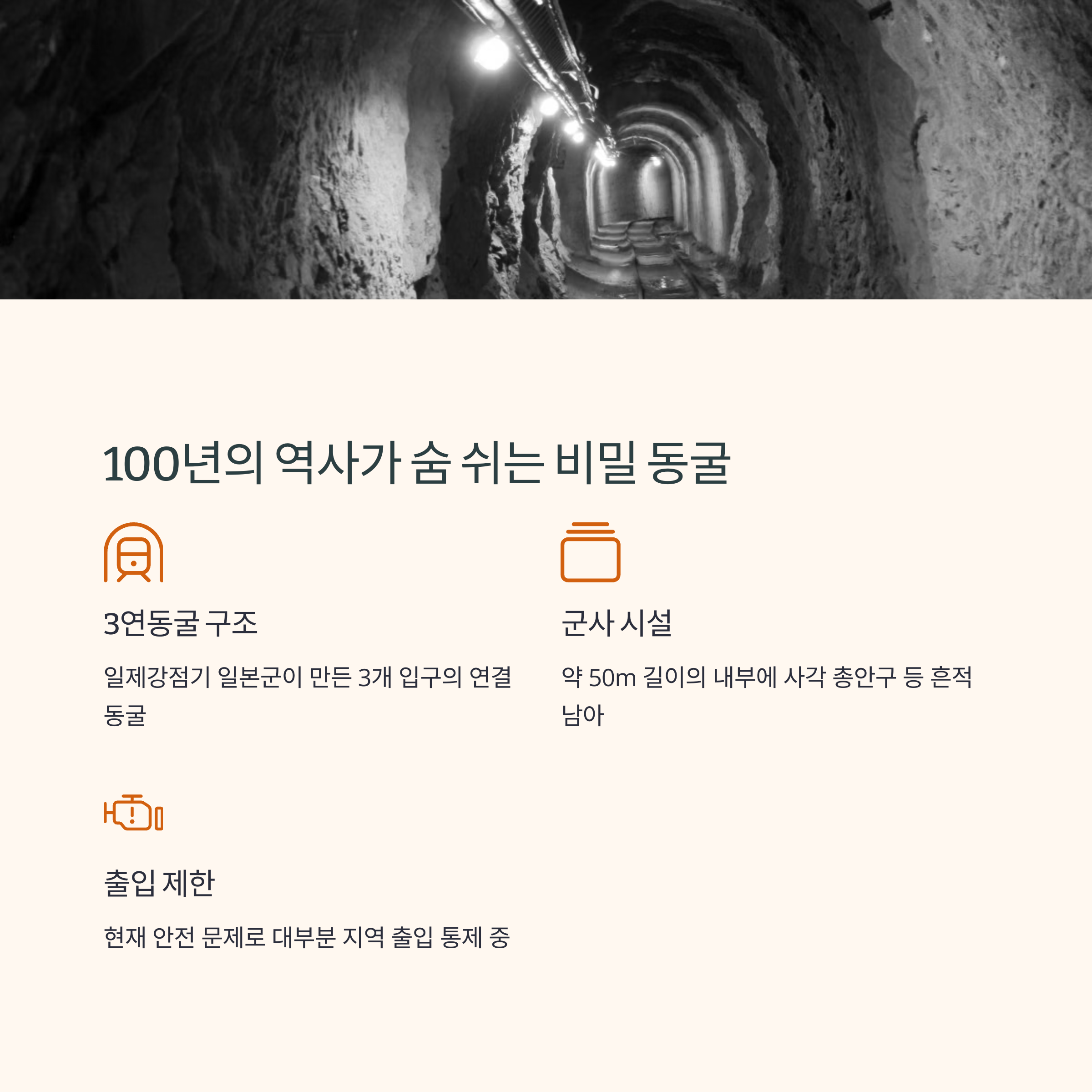 | 인공동굴 | 3개의 입구와 총안구가 남은 군사 유적 동굴 |