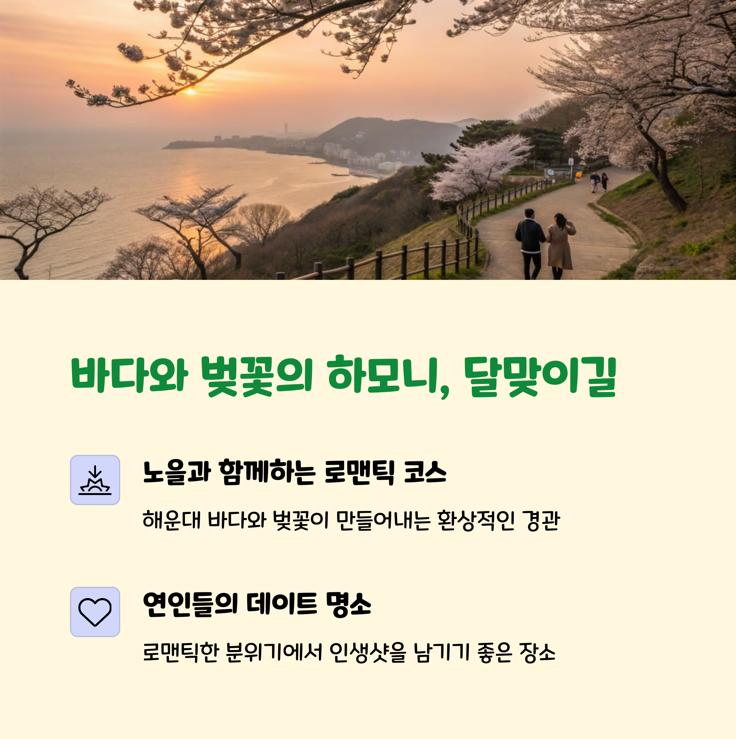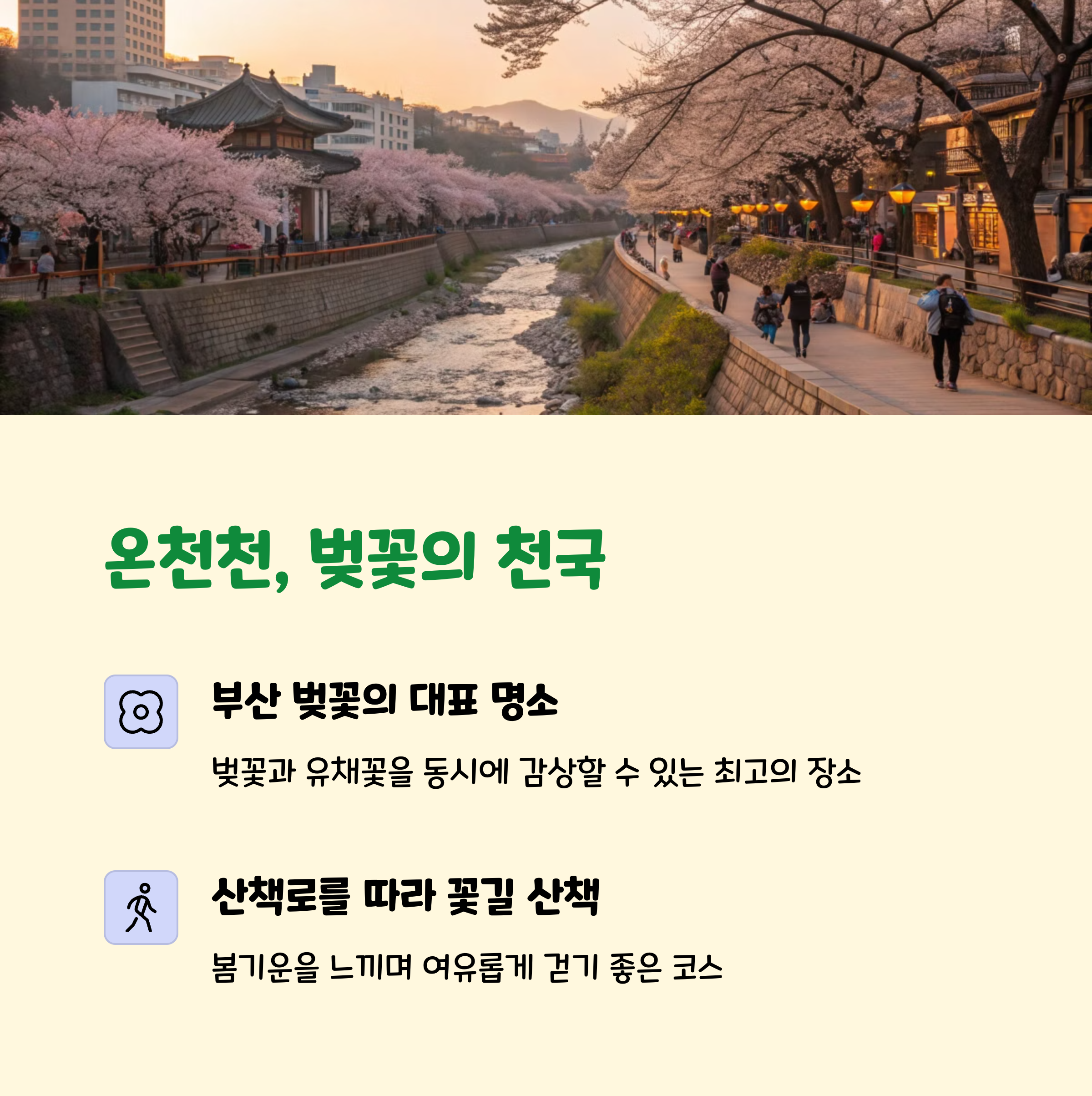 | 부산 벚꽃 명소 | 온천천, 맥도생태공원, 해운대 달맞이길 |
