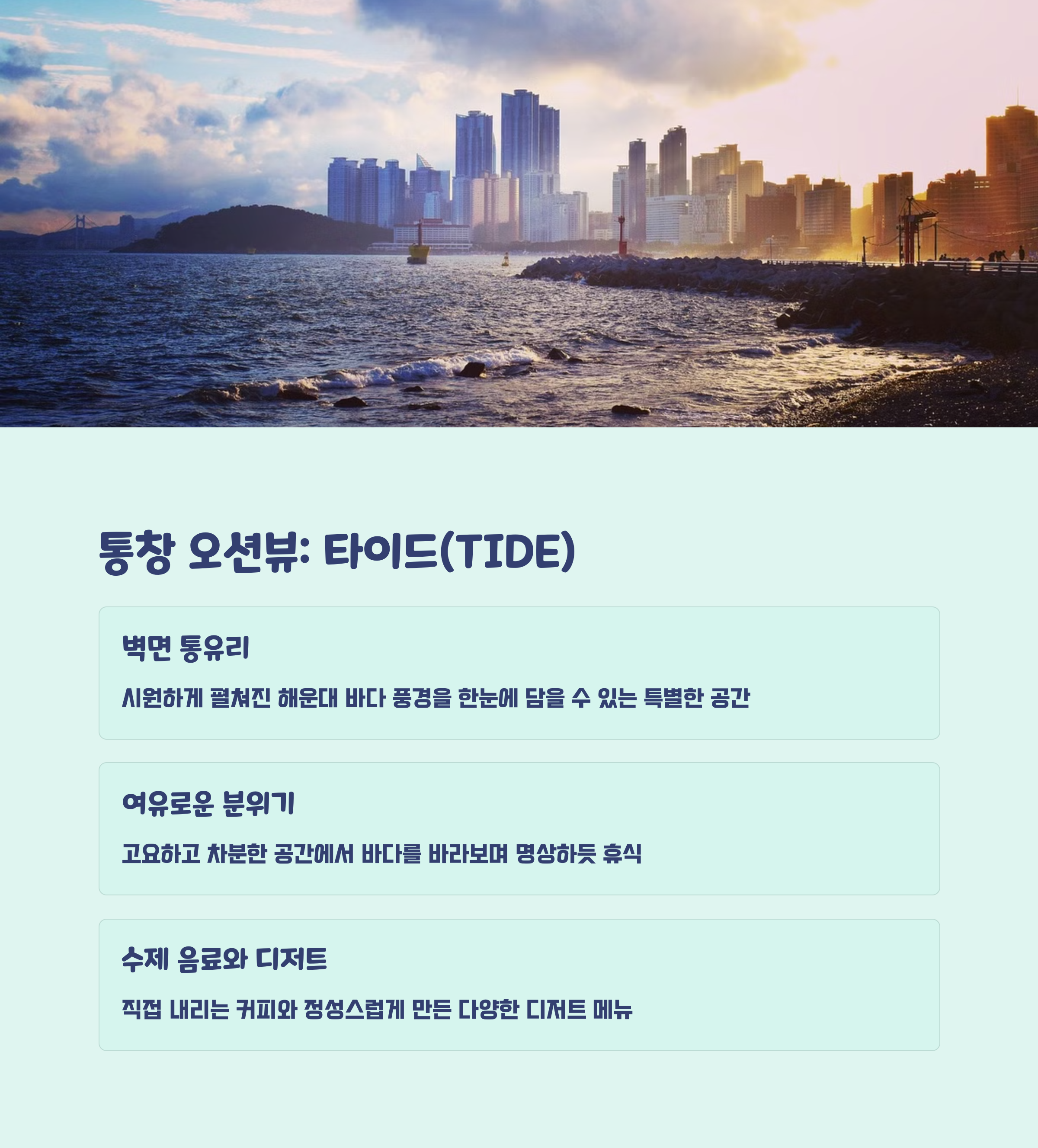 해운대 끝자락에서 만나는 감성 카페 거리, 해리단길. 지금 이곳은 오션뷰, 노을, 루프탑, 감성 인테리어를 모두 갖춘 핫한 신상 카페들의 성지로 떠오르고 있습니다. 이번 콘텐츠에서는 바다를 바라보며 브런치와 디저트를 즐길 수 있는 오션뷰 카페와 해리단길 속 인기 디저트 카페, 분위기 좋은 감성 핫플까지 한눈에 정리해드립니다.