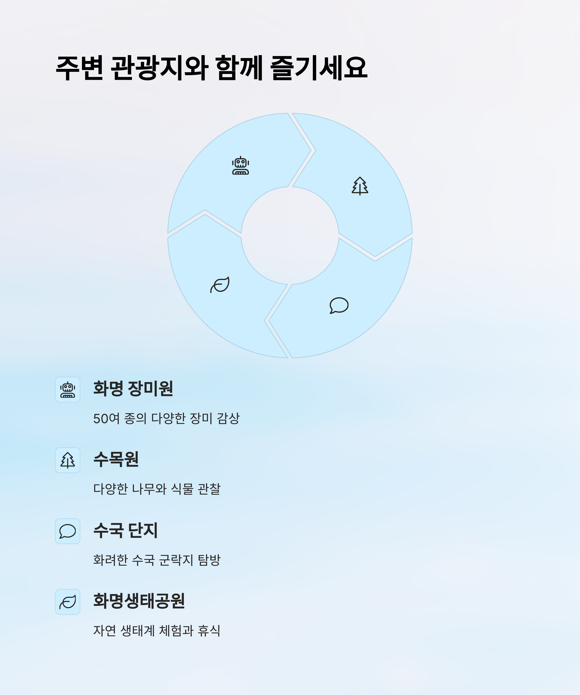 주변 명소 수목원, 수국 단지, 생태공원 등 연계 관광 가능