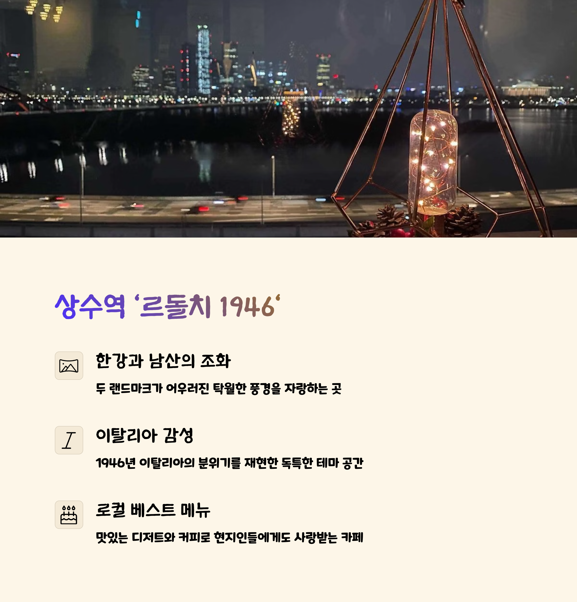 | 서울루프탑카페 | 한강뷰카페 | 남산뷰카페 |