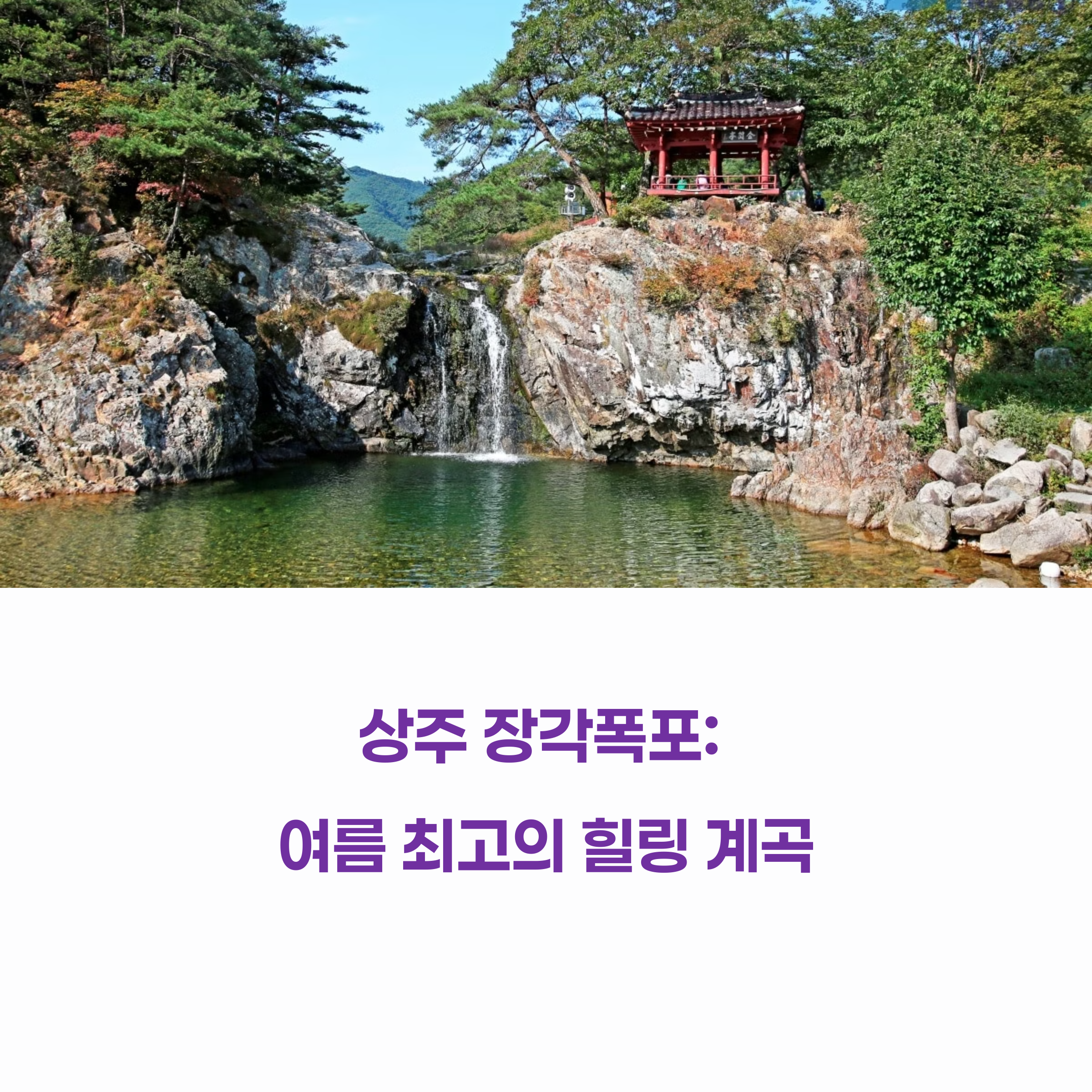 여름철 당일치기 여행지를 찾고 있다면 상주 장각폭포는 단연 추천할 만한 장소입니다. 시원한 계곡물과 함께 주변의 울창한 소나무숲, 한적한 분위기의 정자까지 어우러져 도심의 피로를 잊게 해주는 자연 속 쉼터입니다. 특히 무더운 날씨에 실내보다는 자연 속에서 물놀이를 즐기고 싶을 때, 깊지 않은 계곡과 적당한 그늘을 갖춘 이곳은 부담 없이 즐기기에 적합합니다. 가족 단위의 피서객들도 많고 아이들과 안전하게 물놀이를 할 수 있어 여름방학을 맞이한 가족 여행지로도 좋습니다. 무엇보다도 복잡하지 않은 코스로 인해 계획 없이 떠나는 즉흥적인 여행에도 안성맞춤입니다.
