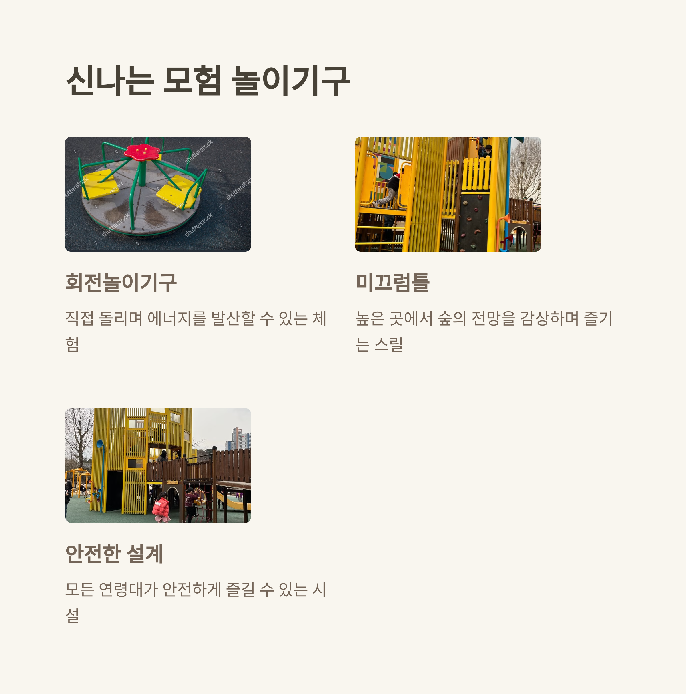 | 추천 놀이 | 시설 특징 | 계절별 즐길 거리 |