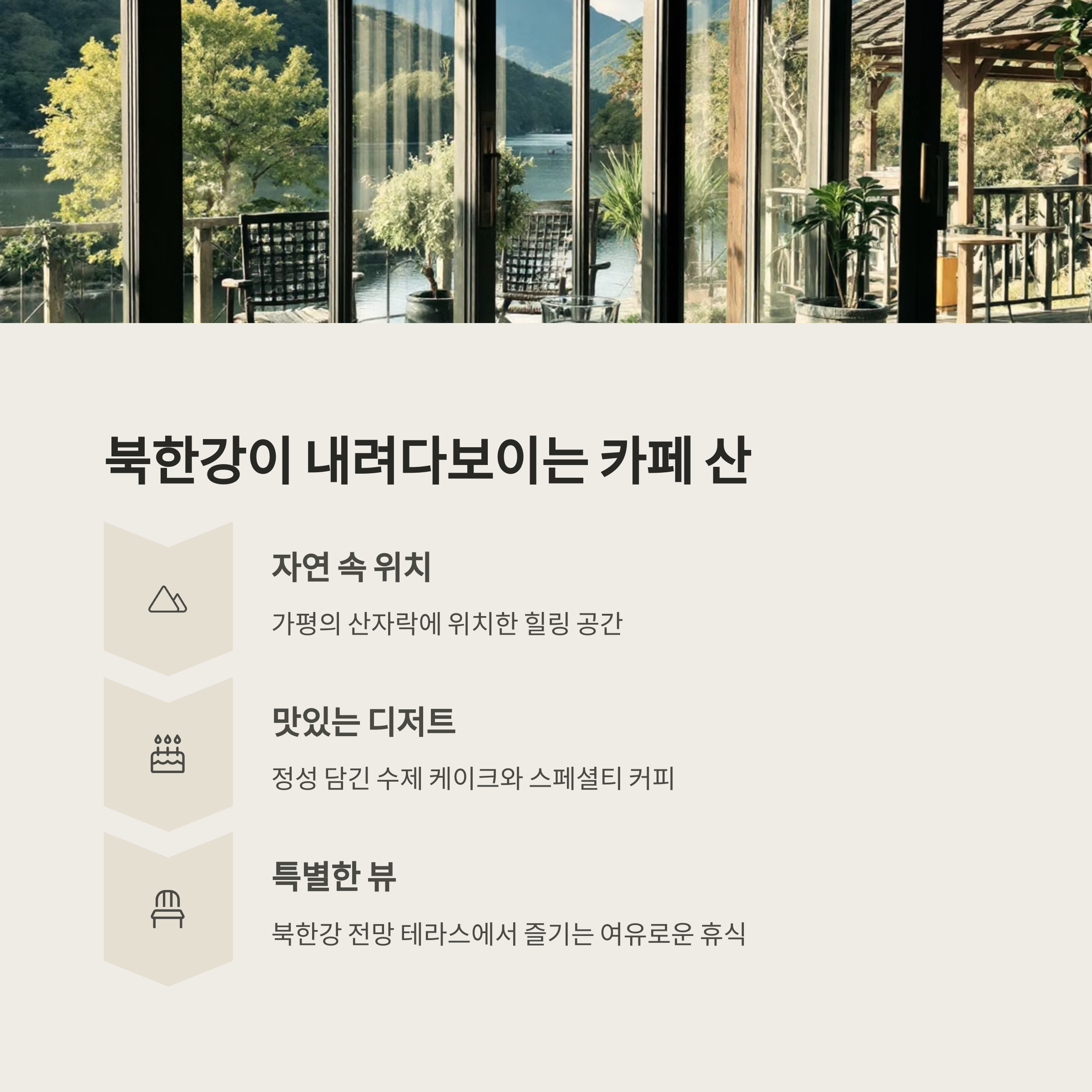 여행의 마무리는 광주 언더스탠드커피에서 즐기는 저녁 브런치입니다. 팔당호의 석양을 바라보며 직접 로스팅한 커피 한 잔과 함께 하루를 정리하는 이 순간은 그 어떤 여행보다 감성적으로 다가옵니다. 자연 속 여유와 감각적인 공간, 그리고 맛있는 음식이 더해진다면 하루가 더욱 아름답게 기억될 것입니다.