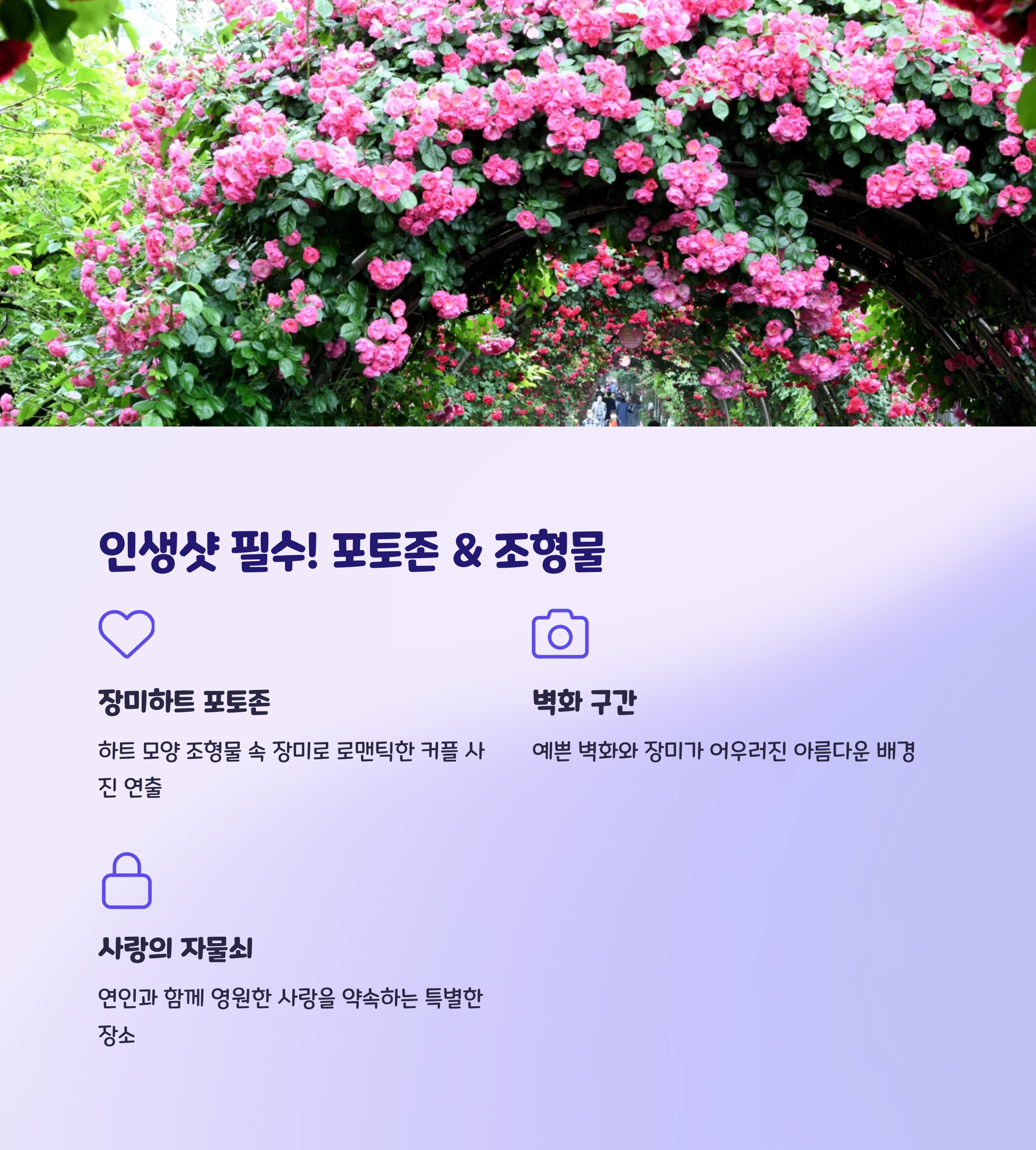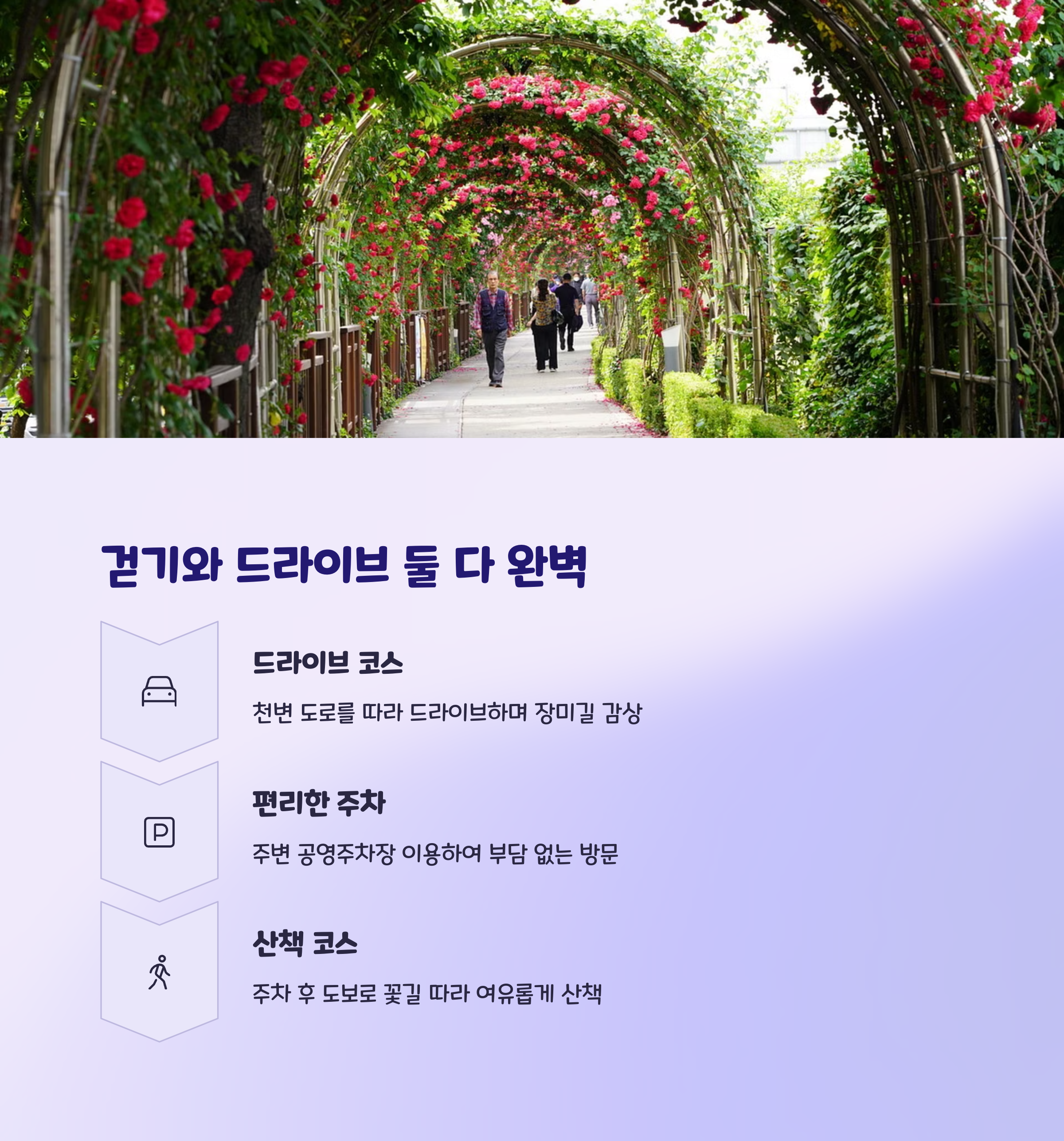 | 추천 시기 | 5월 중순 ~ 5월 말 (장미 만개 시기) |