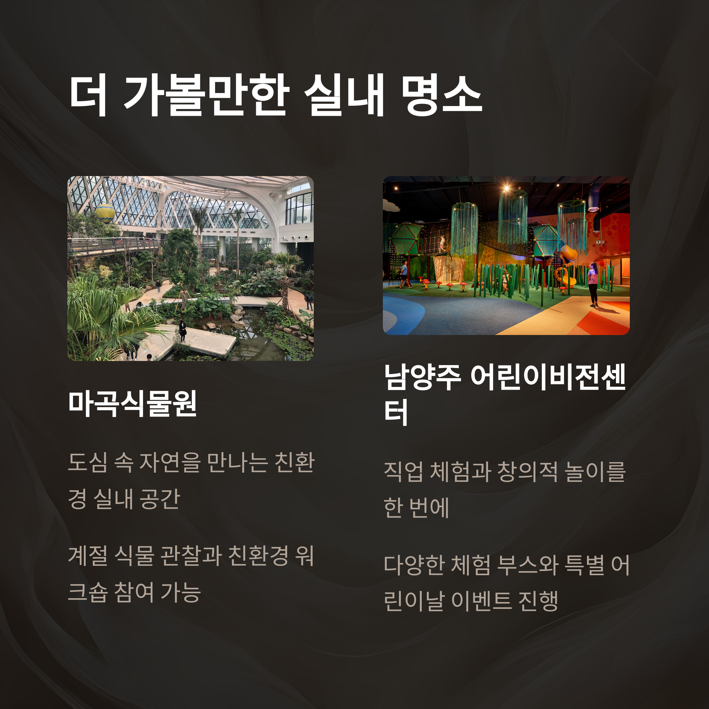 | 어린이날 실내 추천지 | 날씨와 상관없이 아이들이 신나게 놀 수 있는 공간입니다. |