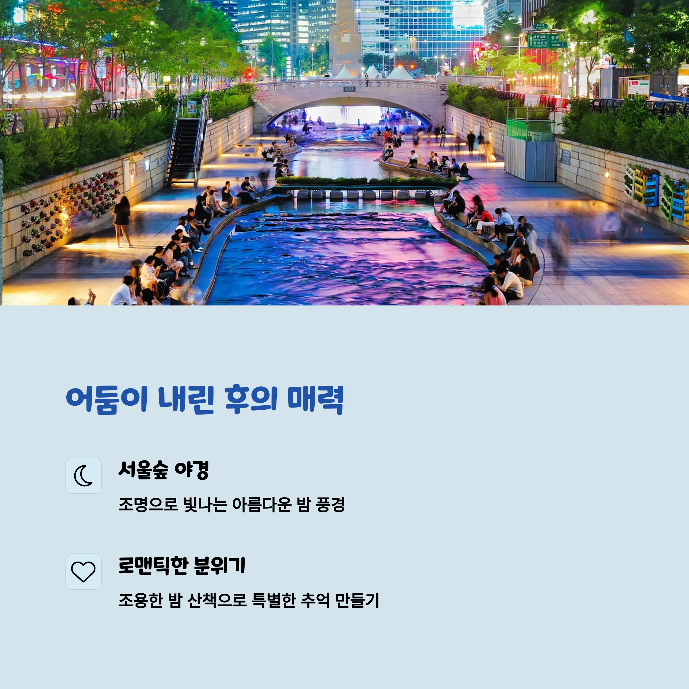 | 서울숲 핵심 키워드 | 자연과 예술, 감성 카페, 성수 트렌드, 야경 명소 |