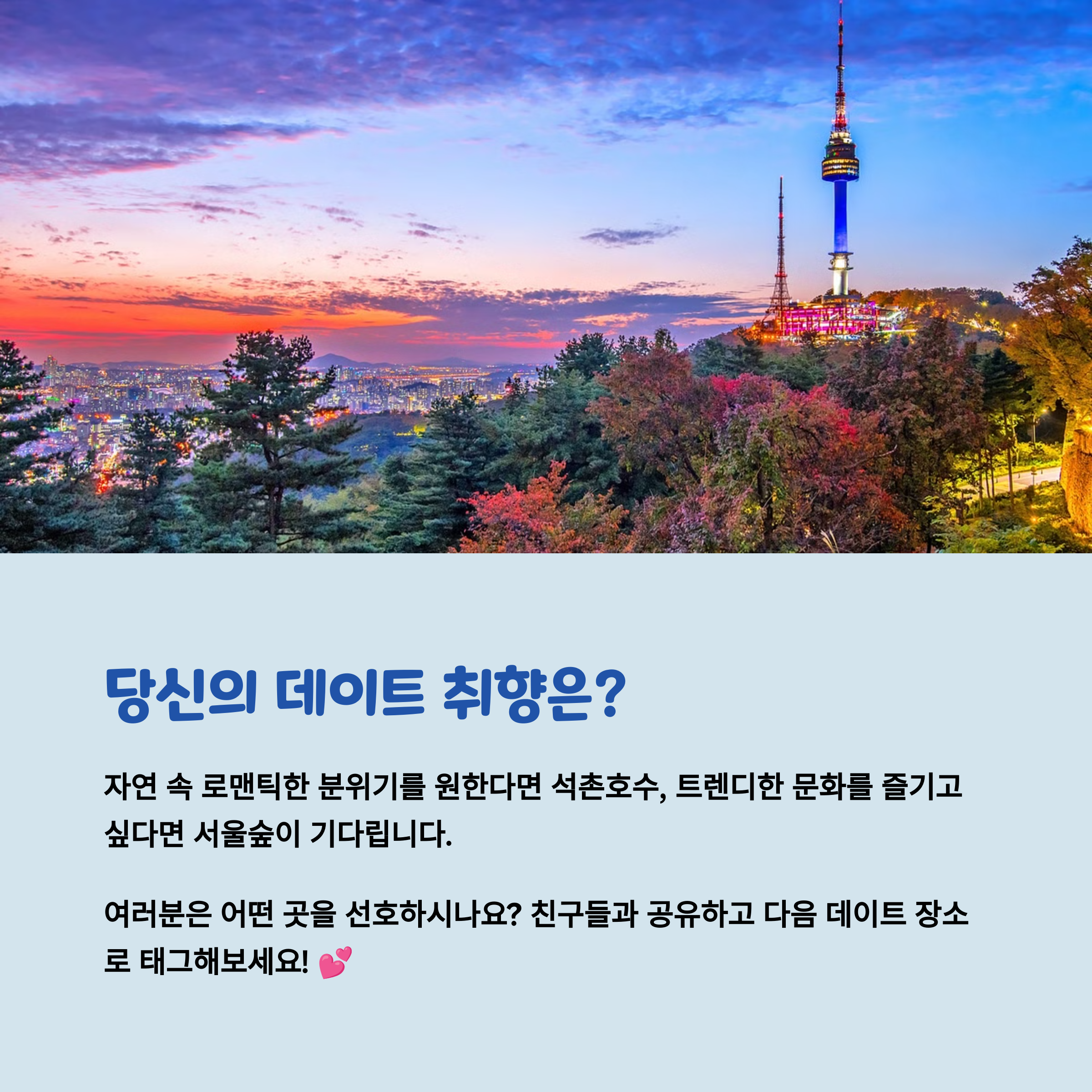 석촌호수와 서울숲, 여러분은 어느 쪽이 더 좋았나요? 데이트를 다녀온 후기나 추천 팁이 있다면 댓글로 알려주세요! 많은 연인들에게 도움이 될 수 있습니다.