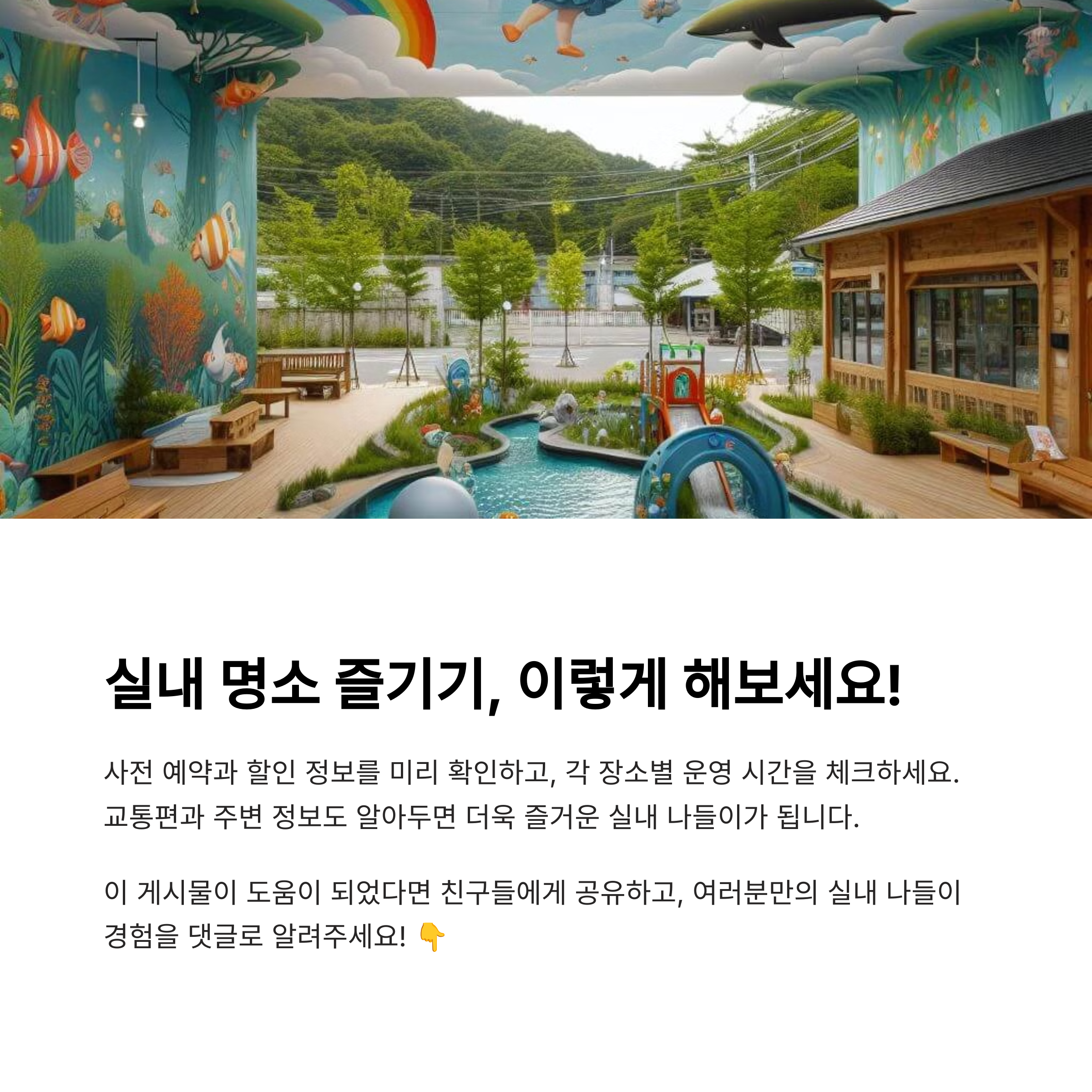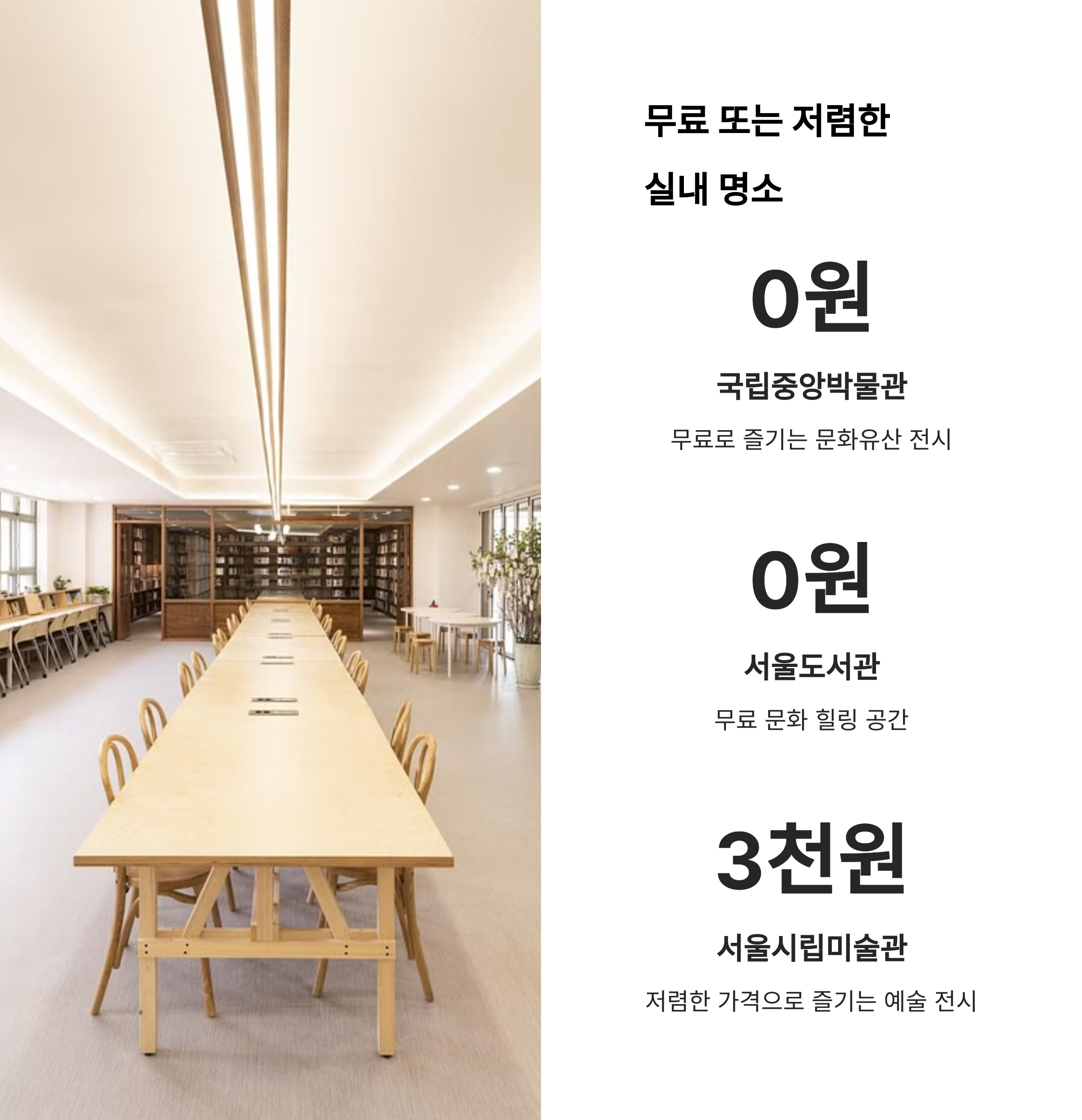 | 날씨 걱정 없는 체험형 키즈 존 | 전시 관람 후 음악과 휴식의 콜라보 | 계절 무관, 도심 속 자연 체험 |