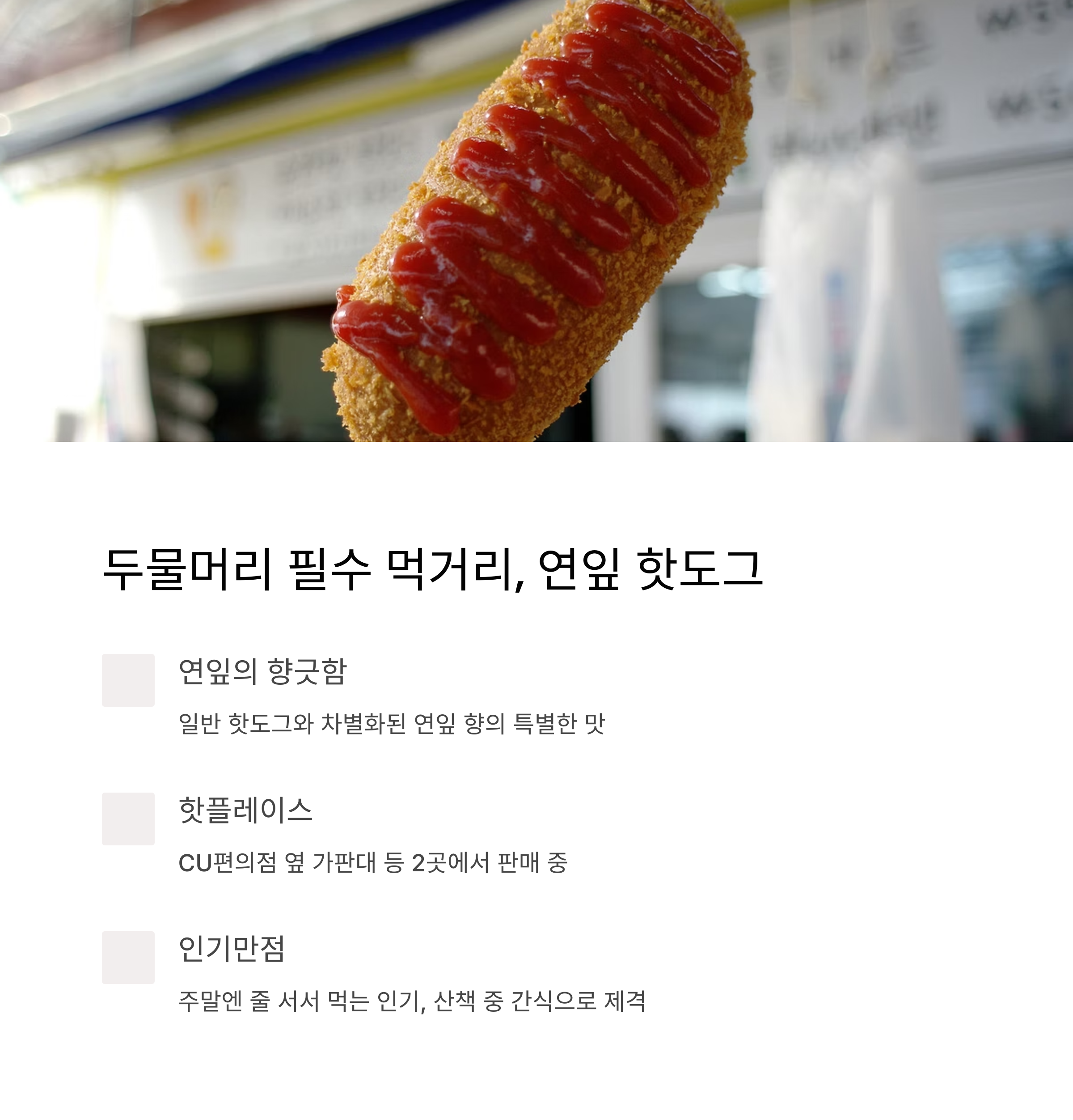 | 감성 풍경과 산책이 어우러진 명소 | 남한강, 북한강 따라 즐기는 드라이브 | 연밥, 냉면, 매운탕, 핫도그 별미 |