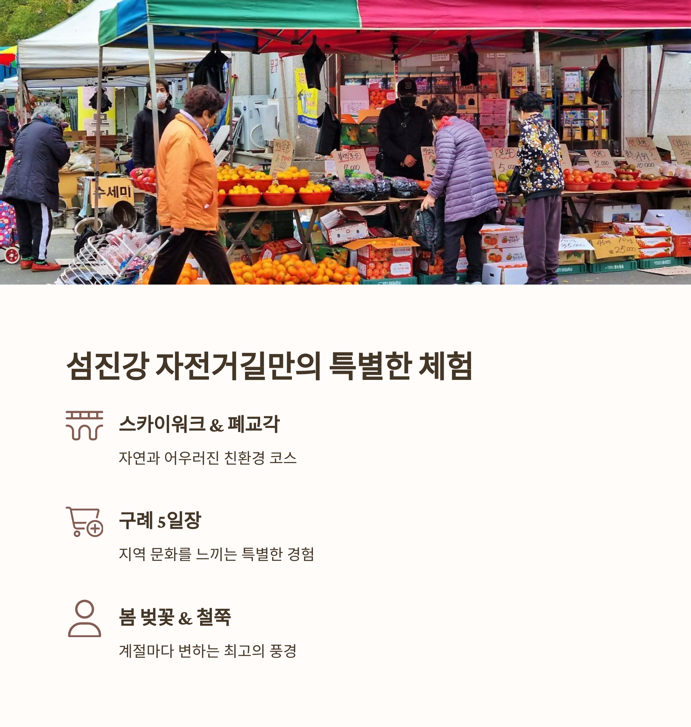 | 라이딩, 풍경 감상, 지역 특색 체험 | 가족 산책, 어르신과 방문, 조용한 분위기 | 혼자/가족/연인 모두 어울림 |