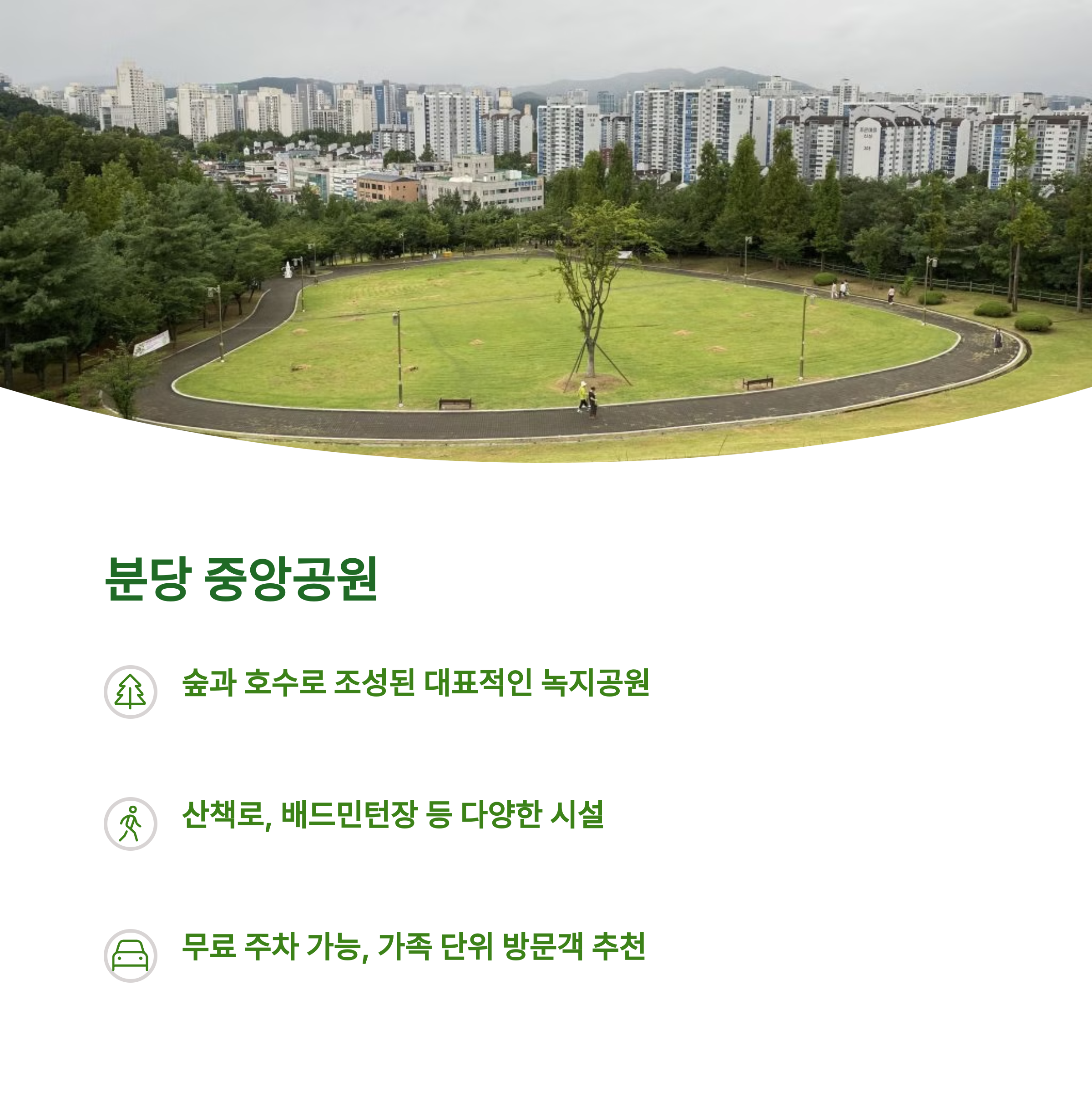 첫 번째 추천지는 분당 중앙공원입니다. 성남 시민들의 쉼터이자 대표적인 녹지 공간으로, 울창한 숲과 잘 정비된 산책로, 넓은 잔디밭과 호수까지 갖춘 도심 속 자연입니다. 아침 운동부터 아이들과의 산책, 반려동물과의 여유로운 산책까지 모두 가능한 곳으로 주말 가족 나들이 명소로 꾸준히 사랑받고 있습니다. 계절에 따라 벚꽃, 단풍, 설경 등 다양한 자연의 풍경을 감상할 수 있어 사계절 매력도 뛰어납니다.