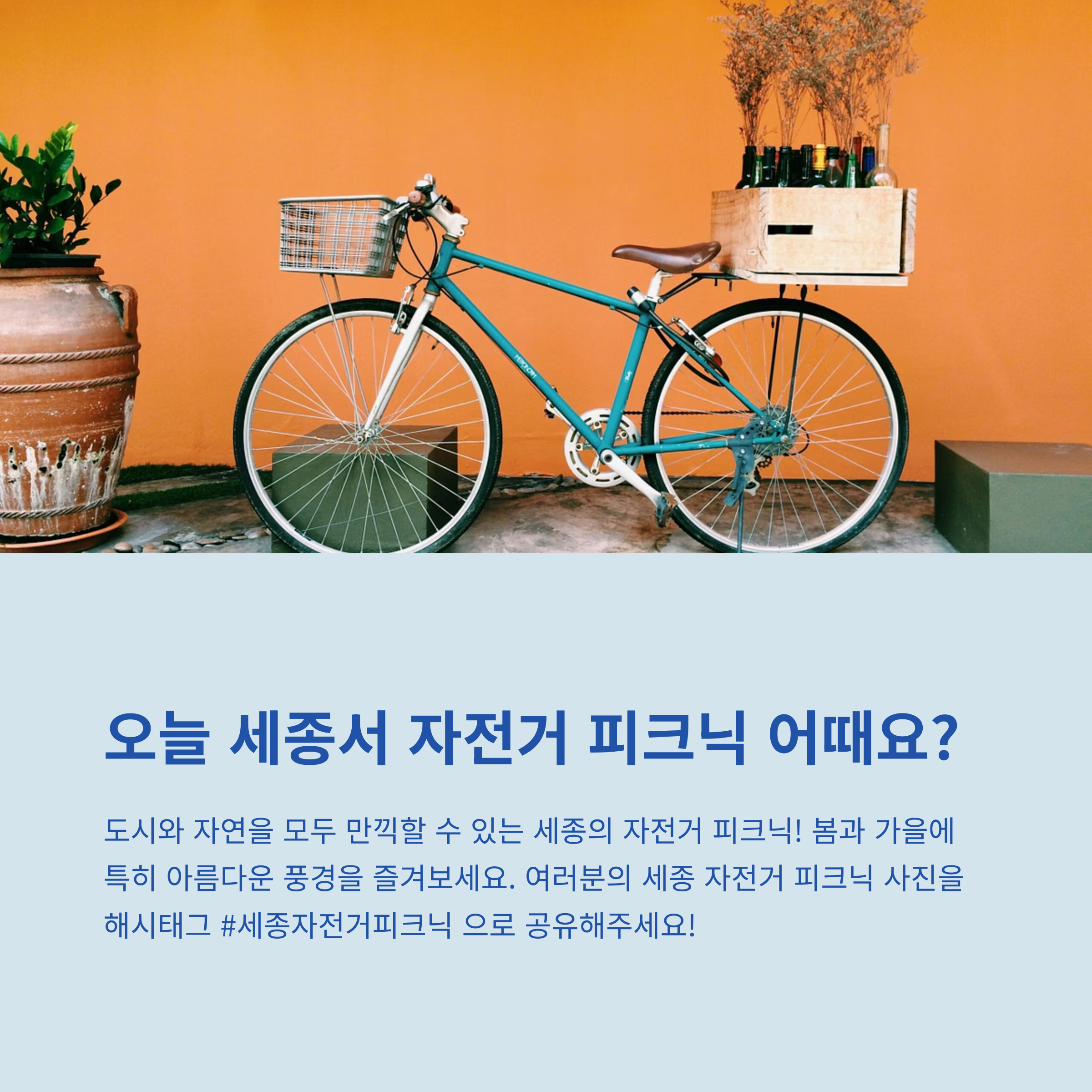 세종시는 도심 안에서도 자연을 만끽할 수 있는 자전거 피크닉 명소가 풍성한 도시입니다. 자전거 하나만 있으면 호수와 강변을 따라 이어지는 풍경 속에서 라이딩도 즐기고, 잔디밭에 앉아 도시락 한 끼를 즐기는 여유로운 시간을 보낼 수 있죠. 그늘막 없이도 쾌적하게 피크닉을 즐길 수 있도록 잘 갖춰진 시설, 접근성 좋은 주차와 자전거도로, 봄바람과 함께하는 벚꽃 풍경까지. 이번 주말, 세종에서 자전거 타고 떠나는 한적한 소풍 어떠세요?