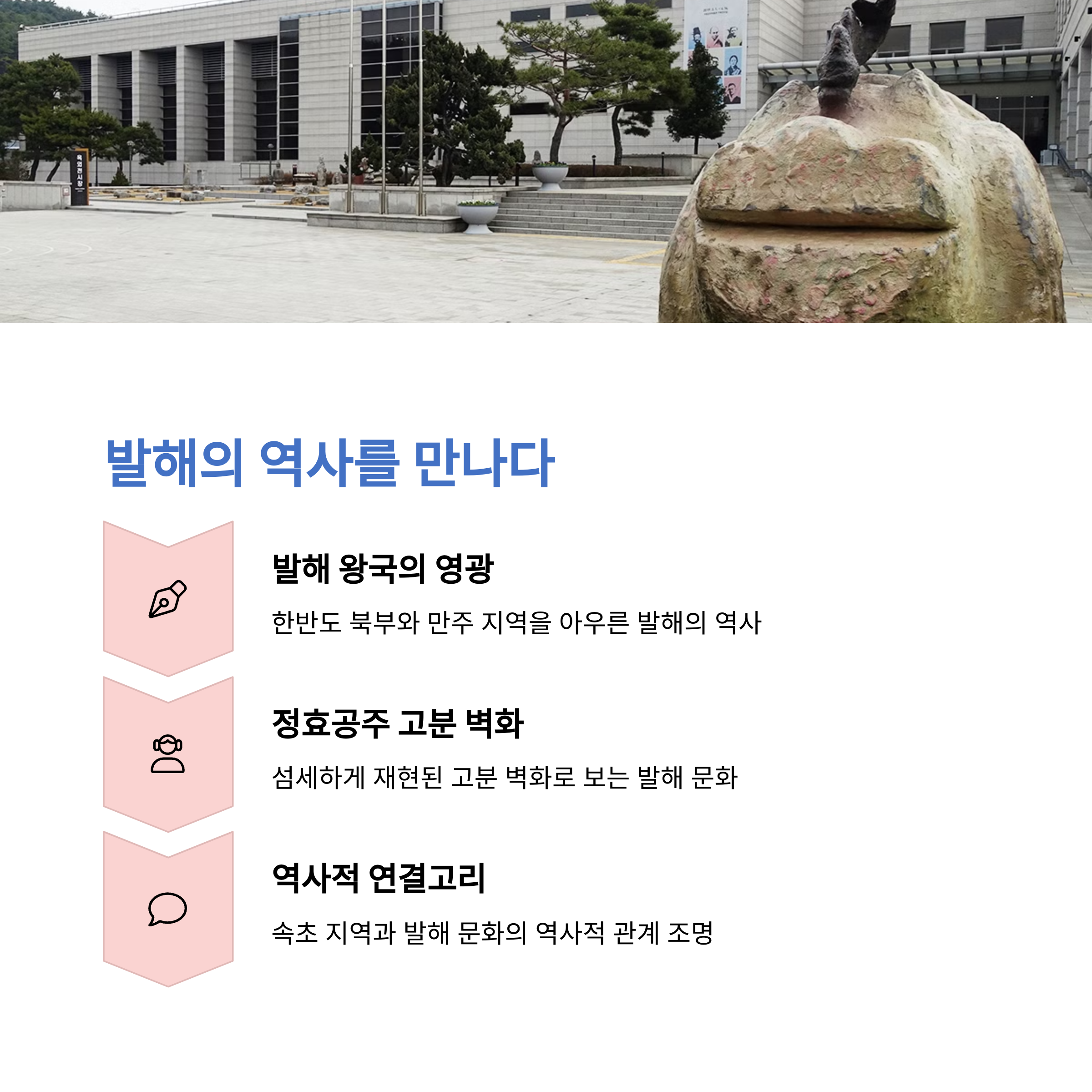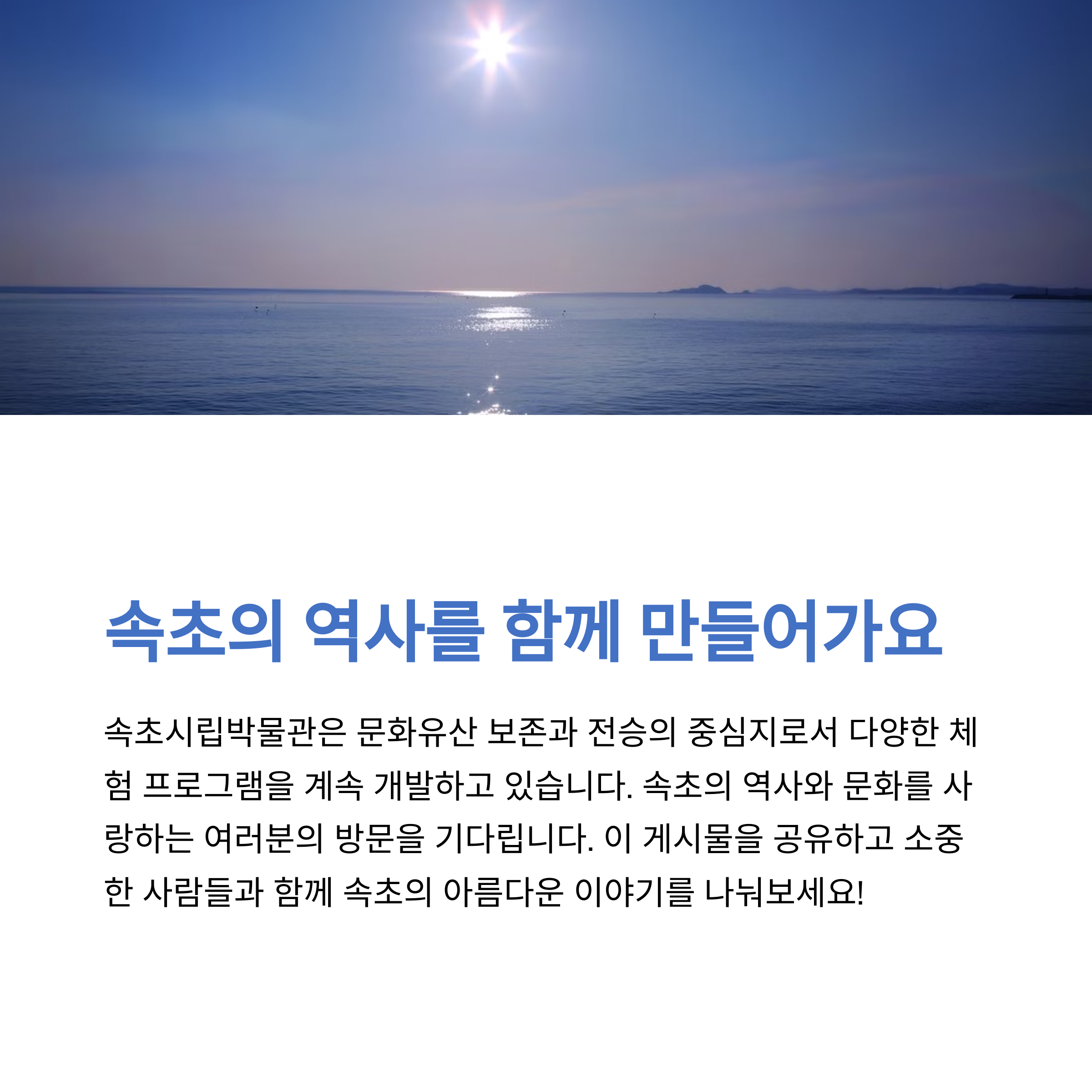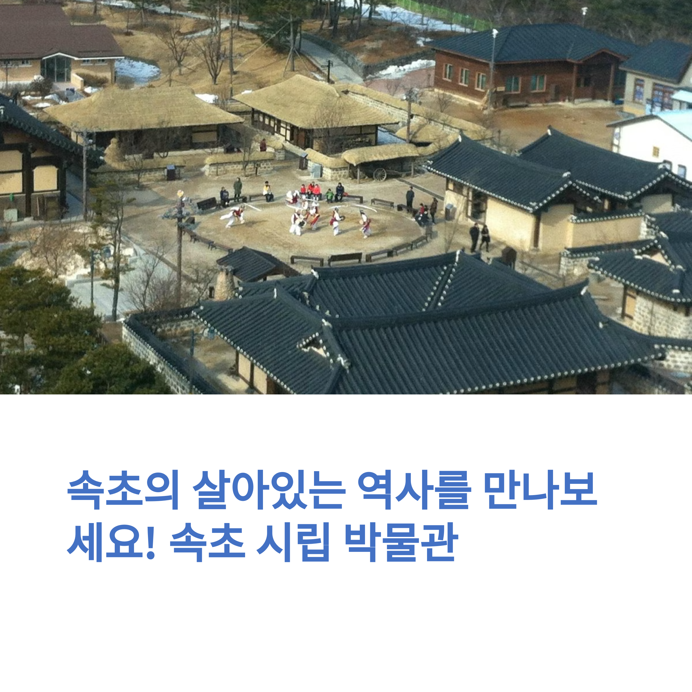 | 지역의 역사와 문화를 간직한 속초 대표 문화 공간 | 실향민의 삶과 추억을 담은 다양한 유물 전시 | 설날 행사 등으로 전통을 체험할 수 있는 기회 제공 |