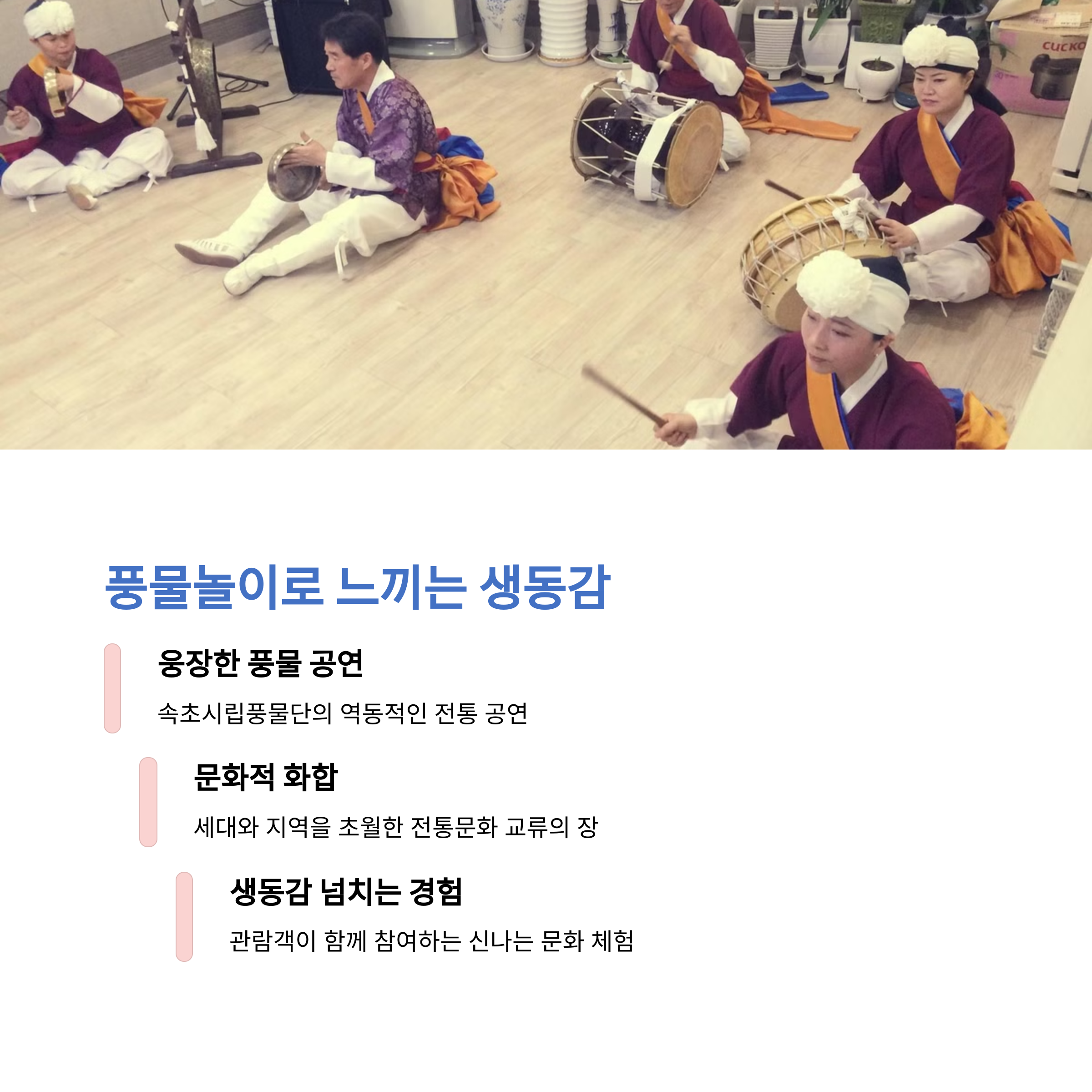 | 속초역사 복원, 풍물 공연 등 다채로운 콘텐츠 운영 | 고향을 떠난 이들의 애환을 공감할 수 있는 전시 | 아이들과 가족이 함께 즐길 수 있는 프로그램 다양 |