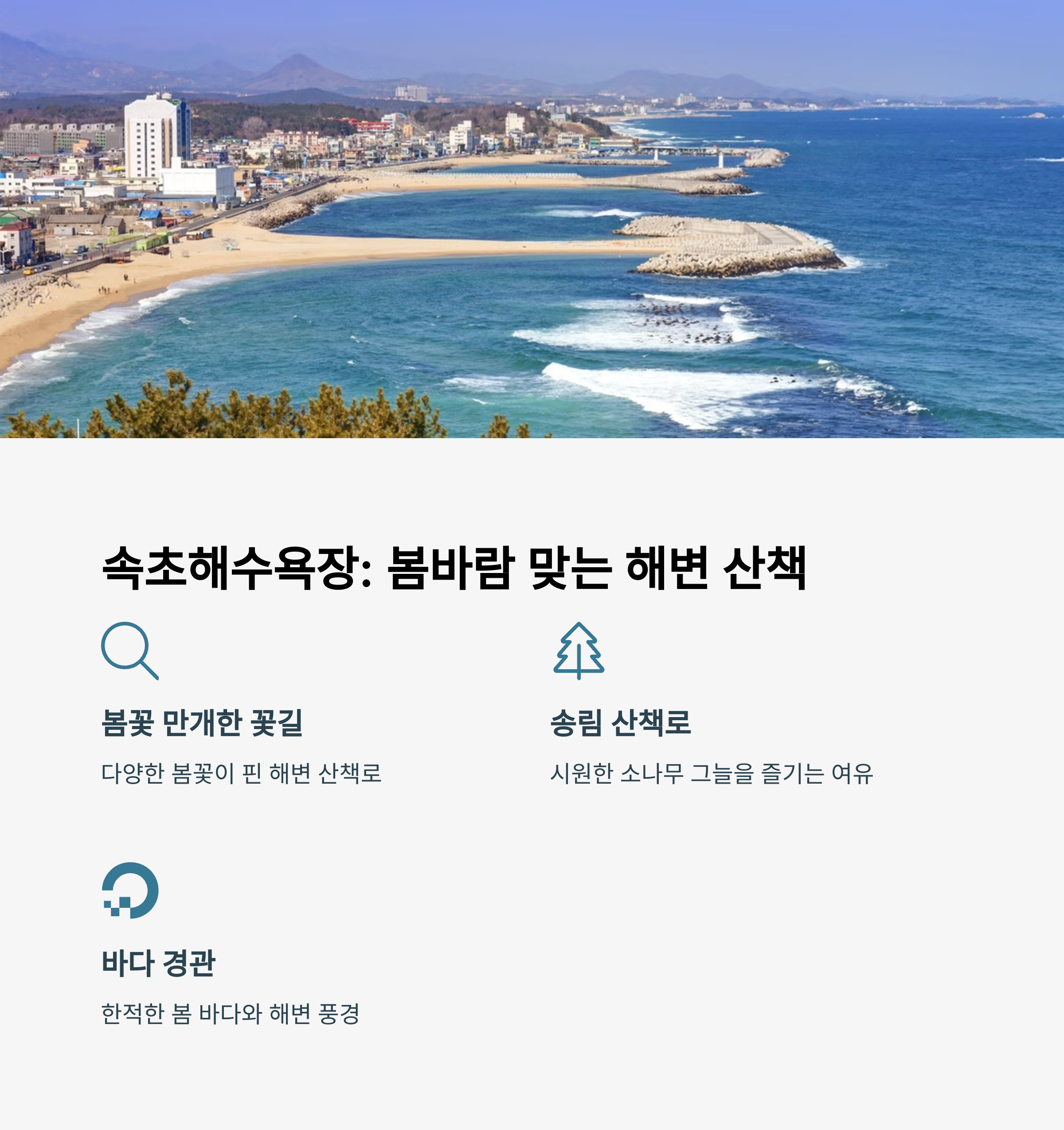 따뜻한 봄 햇살 아래에서 속초의 대표 명소들을 따라 걷는 여행은 자연과 도시, 감성이 어우러진 최고의 코스입니다. 2025년 봄, 속초는 새롭게 문을 연 대관람차 속초아이와 함께 엑스포타워, 청초호, 해수욕장, 대포항까지 매력적인 여행 루트를 완성합니다. 바다를 내려다보며 걷는 산책길과 시원한 전망대, 신선한 해산물 요리까지 하루에 모두 경험할 수 있는 속초 봄 추천 코스를 지금 바로 만나보세요.