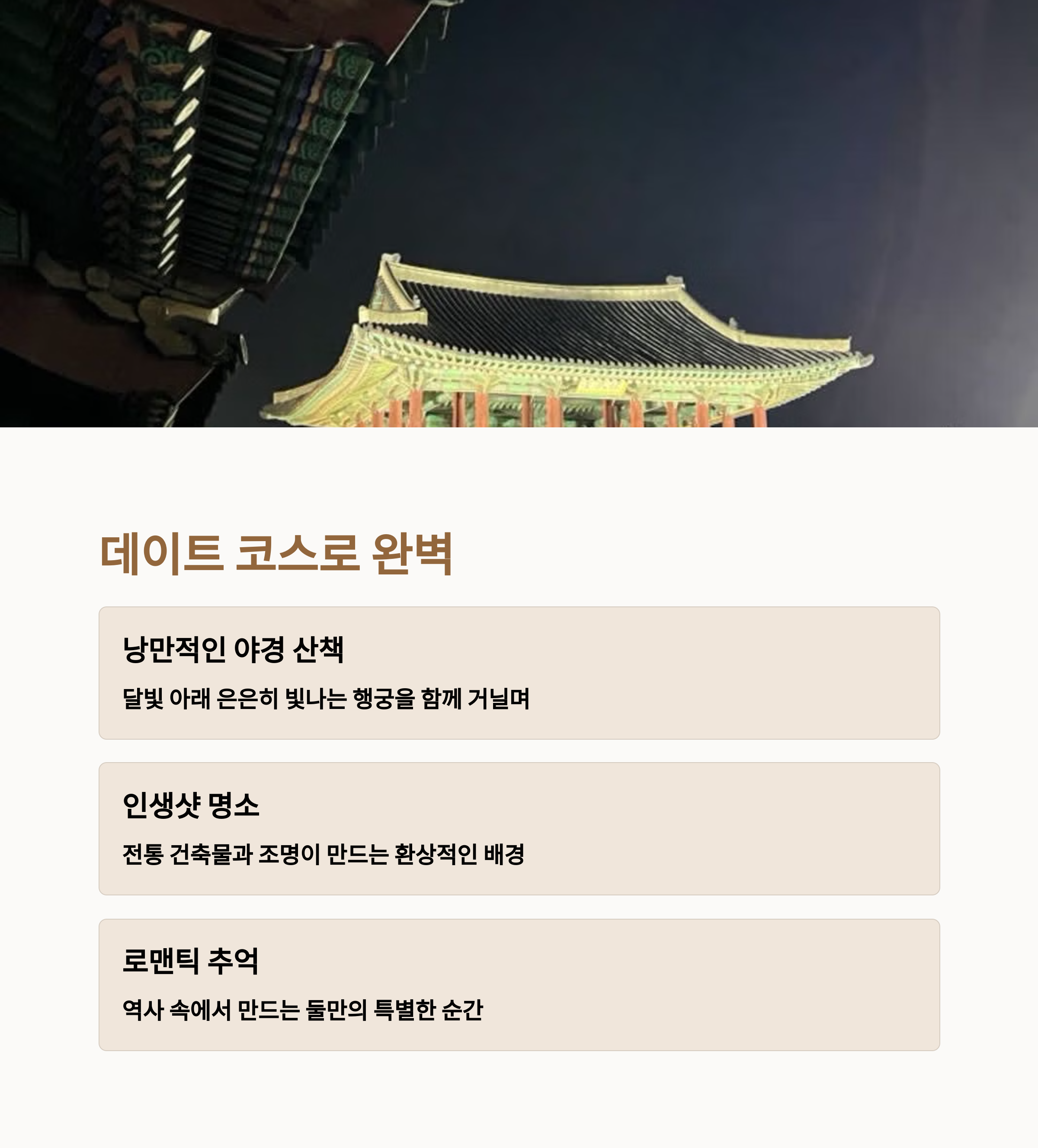 달빛 아래 고궁을 산책하는 특별한 경험 | 하루 코스로 즐기는 문화+먹거리 여행 | 야경 감상과 맛집 탐방을 함께 즐기는 코스 |