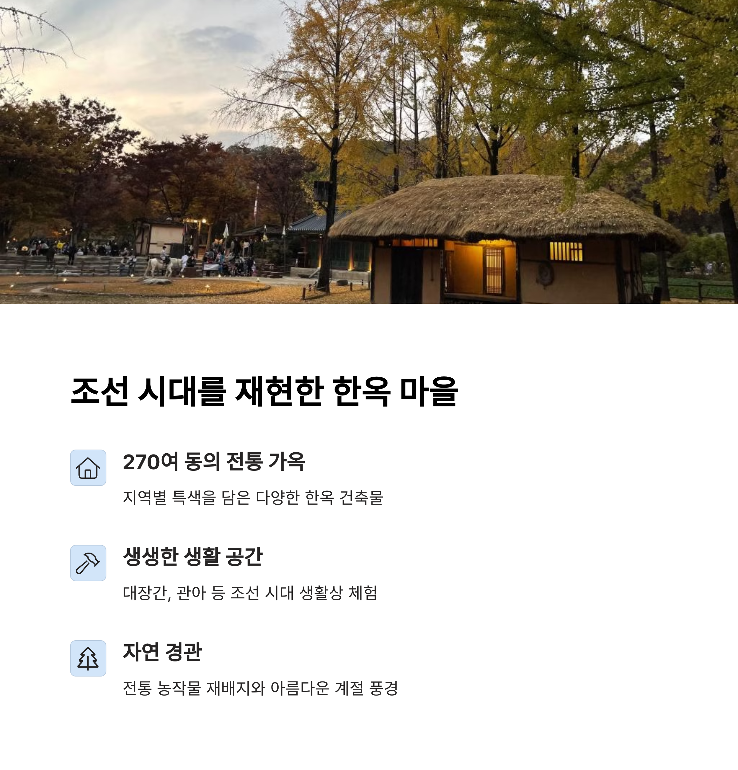 용인 한국민속촌을 다녀오신 적 있나요? 인상 깊었던 공연이나 체험, 추천 팁이 있다면 댓글로 남겨주세요. 많은 이들의 여행에 도움이 됩니다!