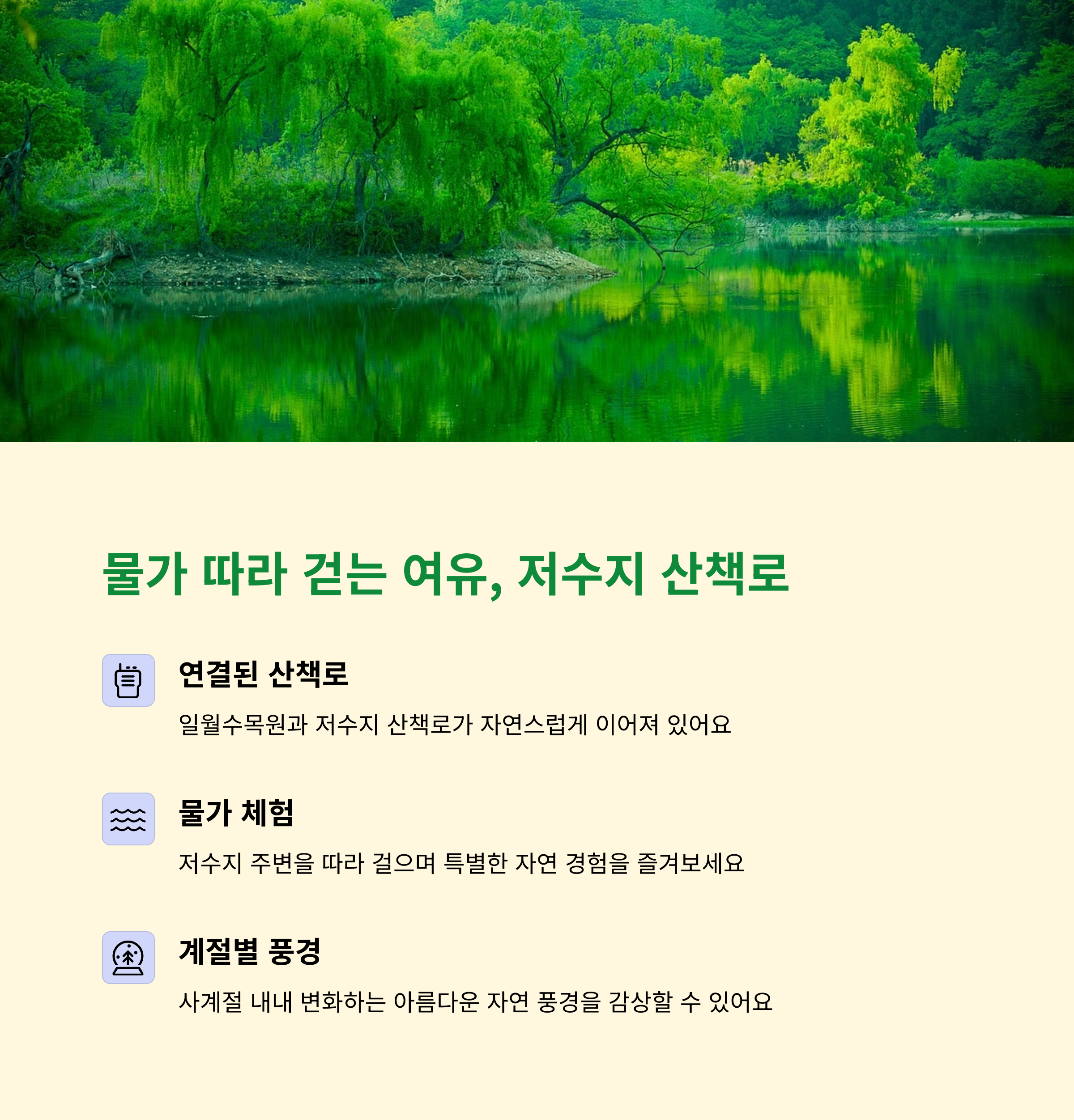 일월수목원 외에도 수원 근교에서 다녀온 힐링 코스가 있다면 댓글로 공유해주세요. 함께 만들어가는 드라이브 지도에 큰 도움이 됩니다!