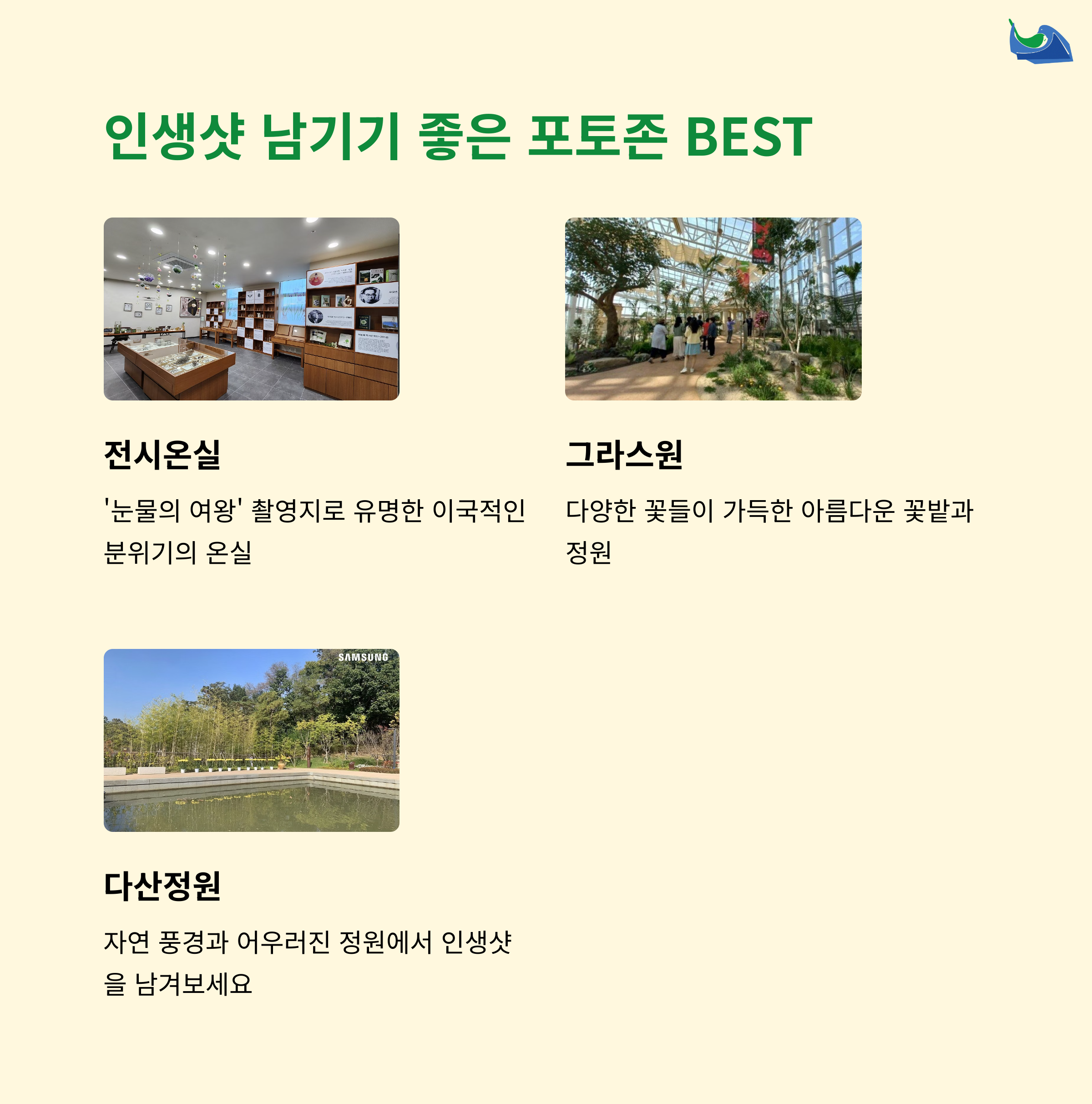 | 주요 추천 이유 | 테마 정원, 온실, 저수지 산책로, 카페까지 모두 갖춘 힐링 명소 |