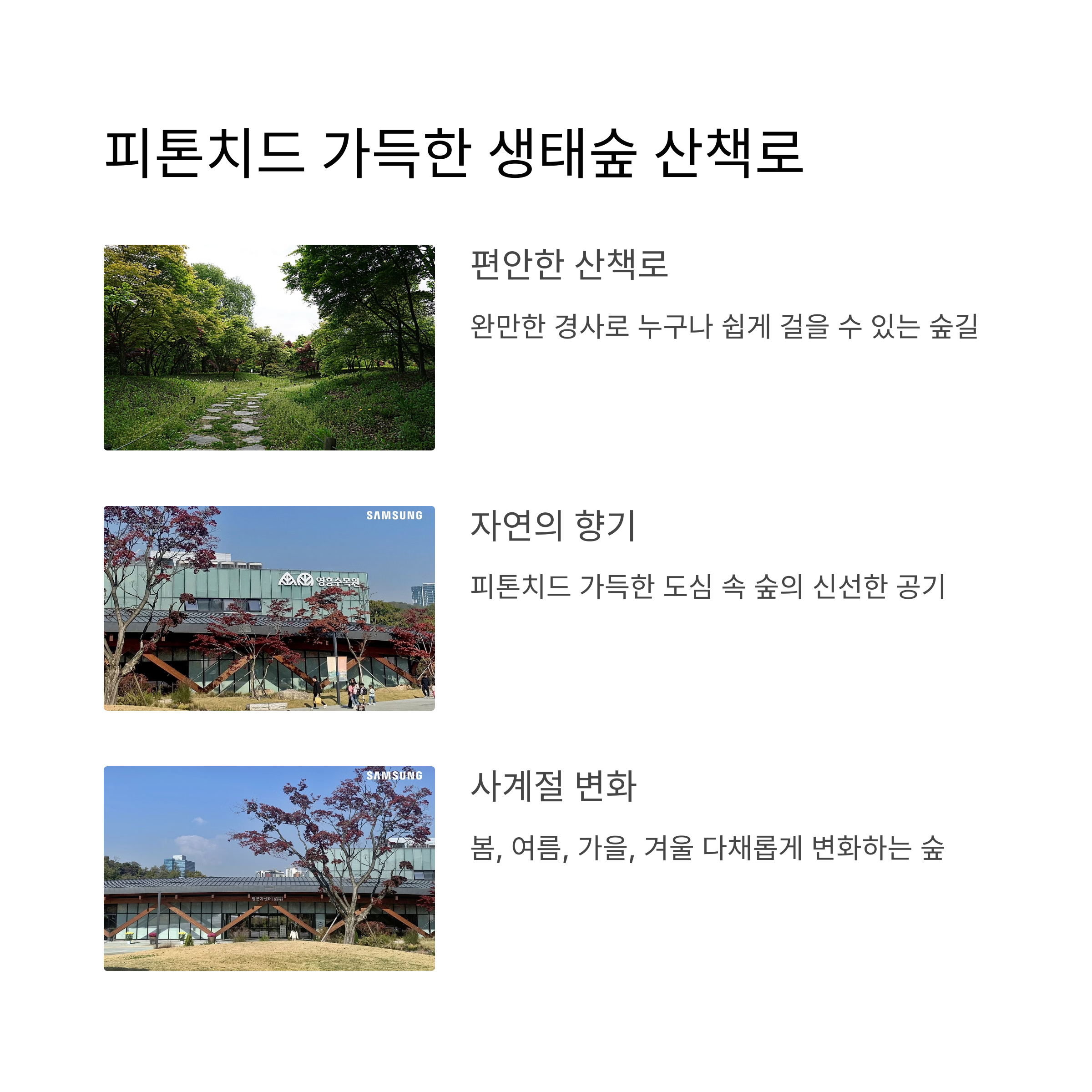 | 도심 속 힐링 수목원 | 수원 시내에서 가까운 위치로 접근성 우수 |