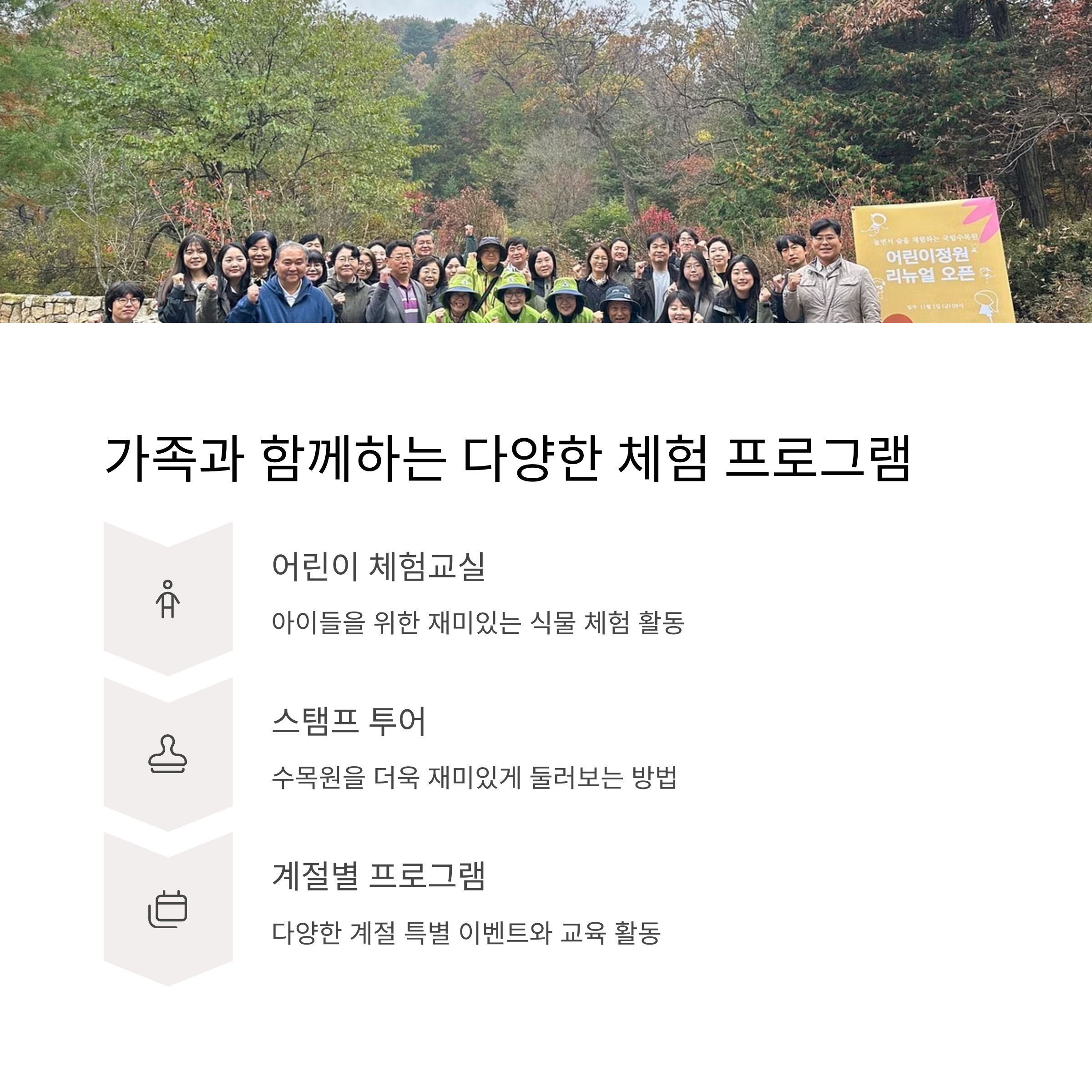계절마다 변하는 아름다운 꽃과 숲길 가족·연인·친구와 함께 즐기는 힐링 공간 스탬프 투어와 야간개장 이벤트 운영