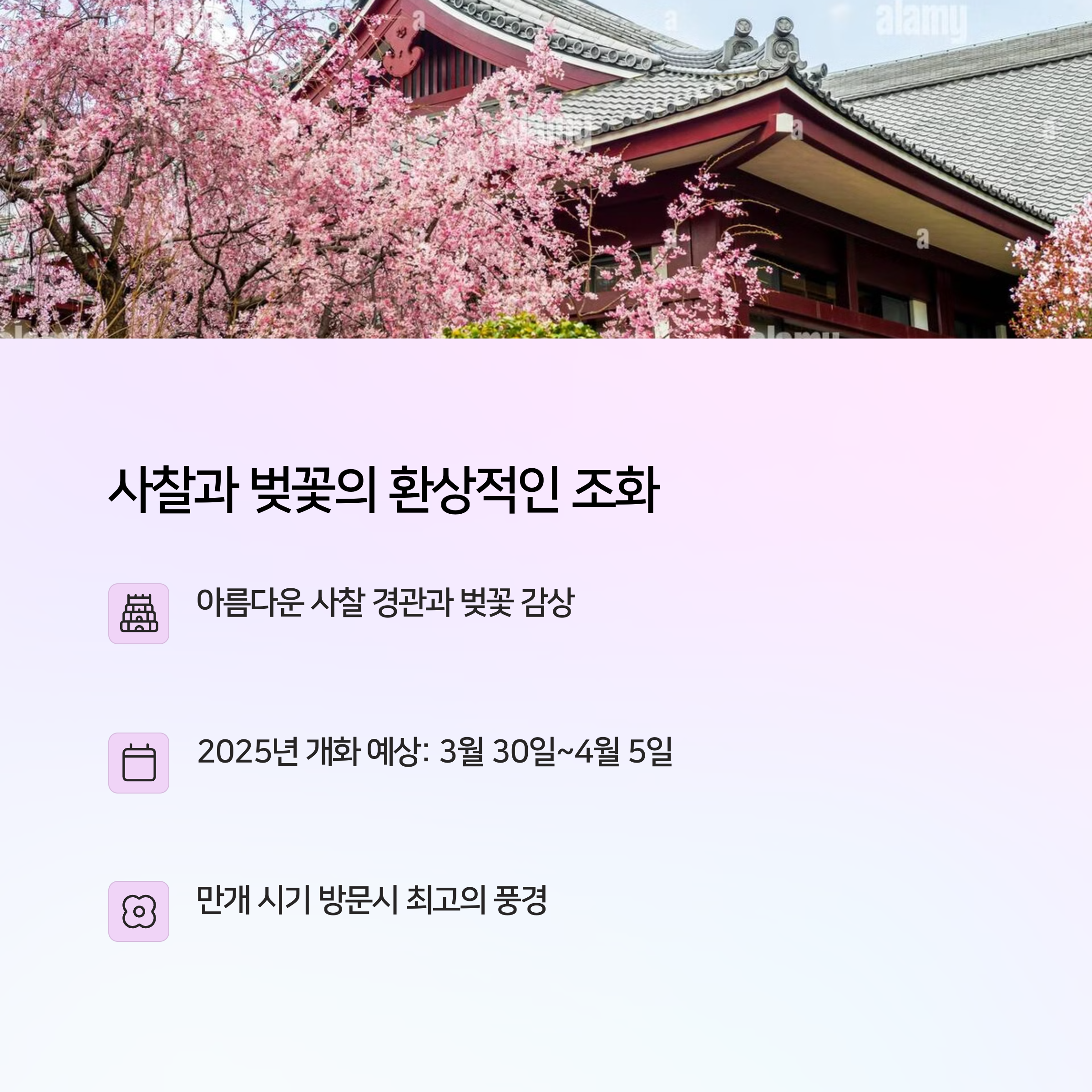 | 중부권 벚꽃 명소, 고요한 사찰 분위기 | 207m 길이의 아찔한 현수교 체험 | 하루 일정으로 구성된 효율적인 봄 여행 |