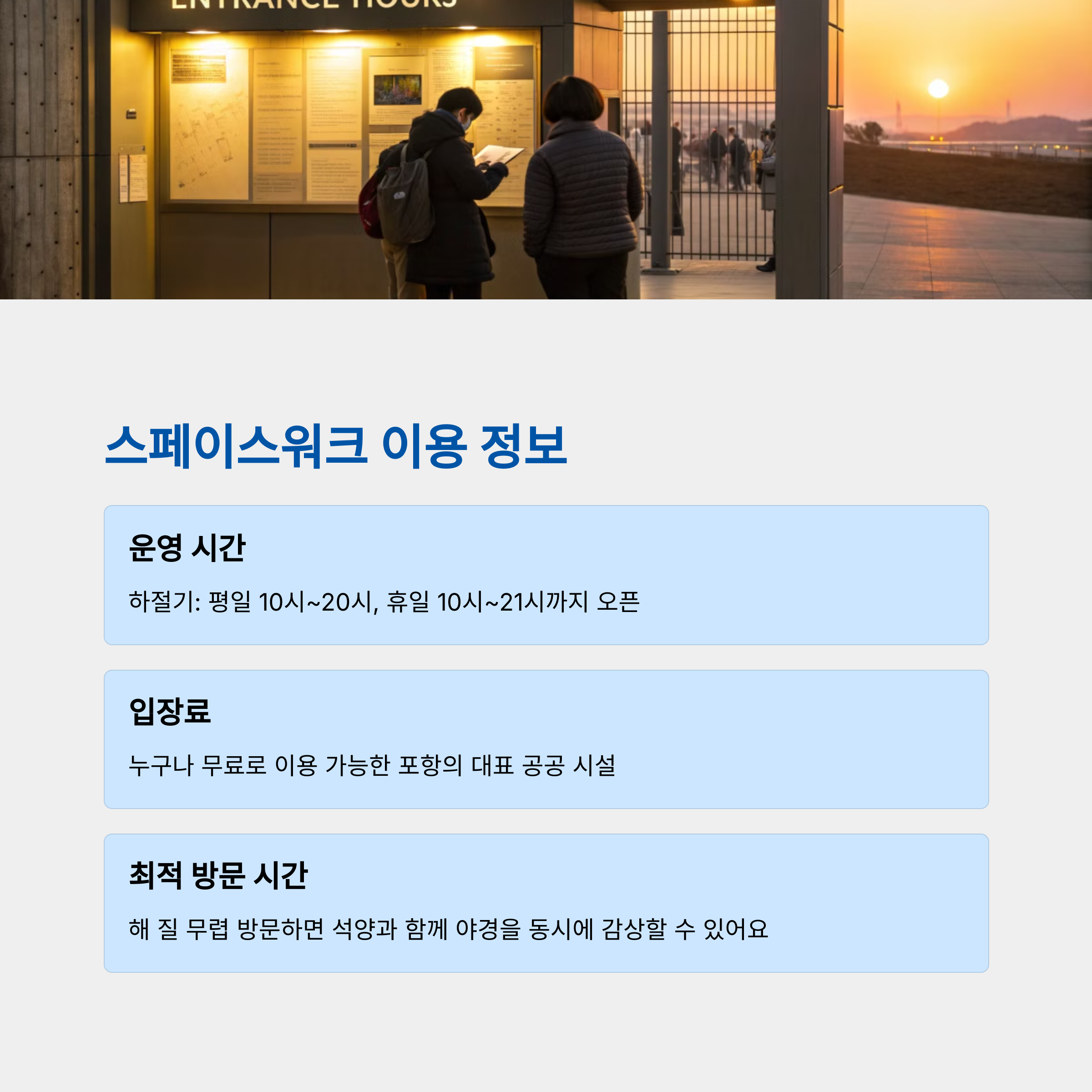 | 주요 매력 | 바다 전망, 일출·일몰 명소, 체험형 조형물, 포항 대표 명소 |
