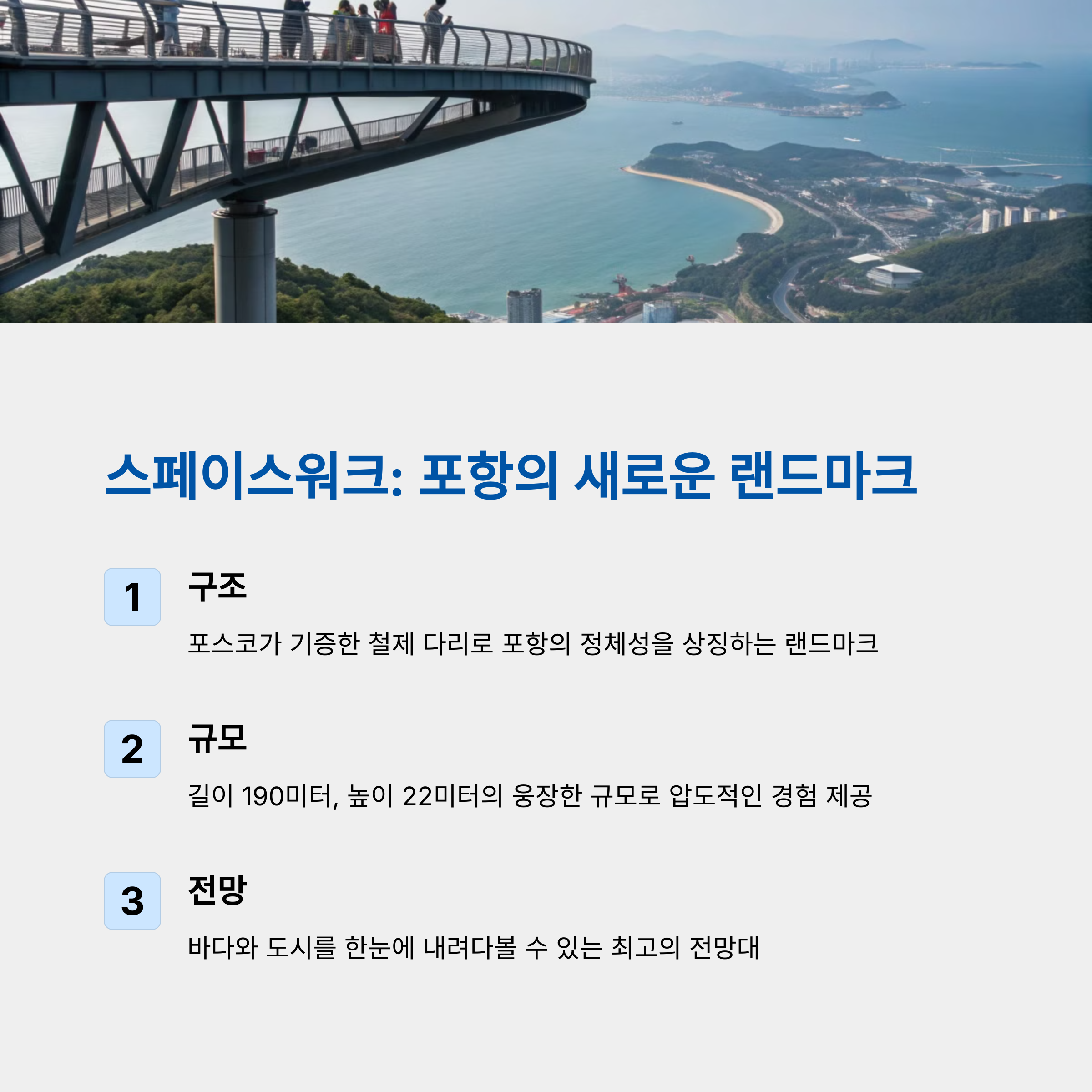 | 스페이스워크 | 철제 트랙, 체험형 조형물 | 포항의 바다와 도시를 한눈에 조망 |