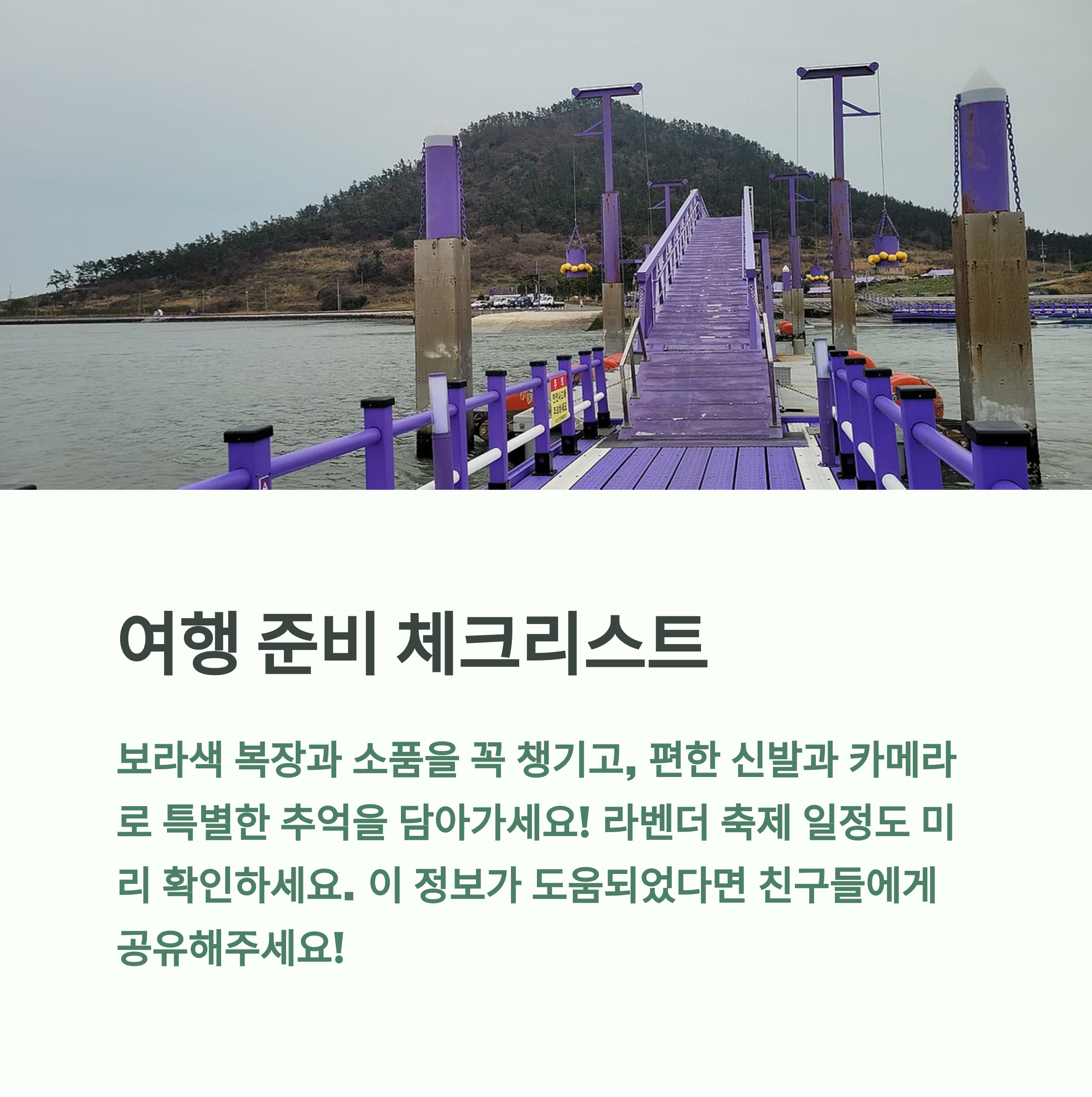 퍼플교, 라벤더정원, 포토존 중 여러분이 가장 좋아한 포인트는 무엇인가요? 다른 여행자들과 후기와 꿀팁을 댓글로 공유해주세요!