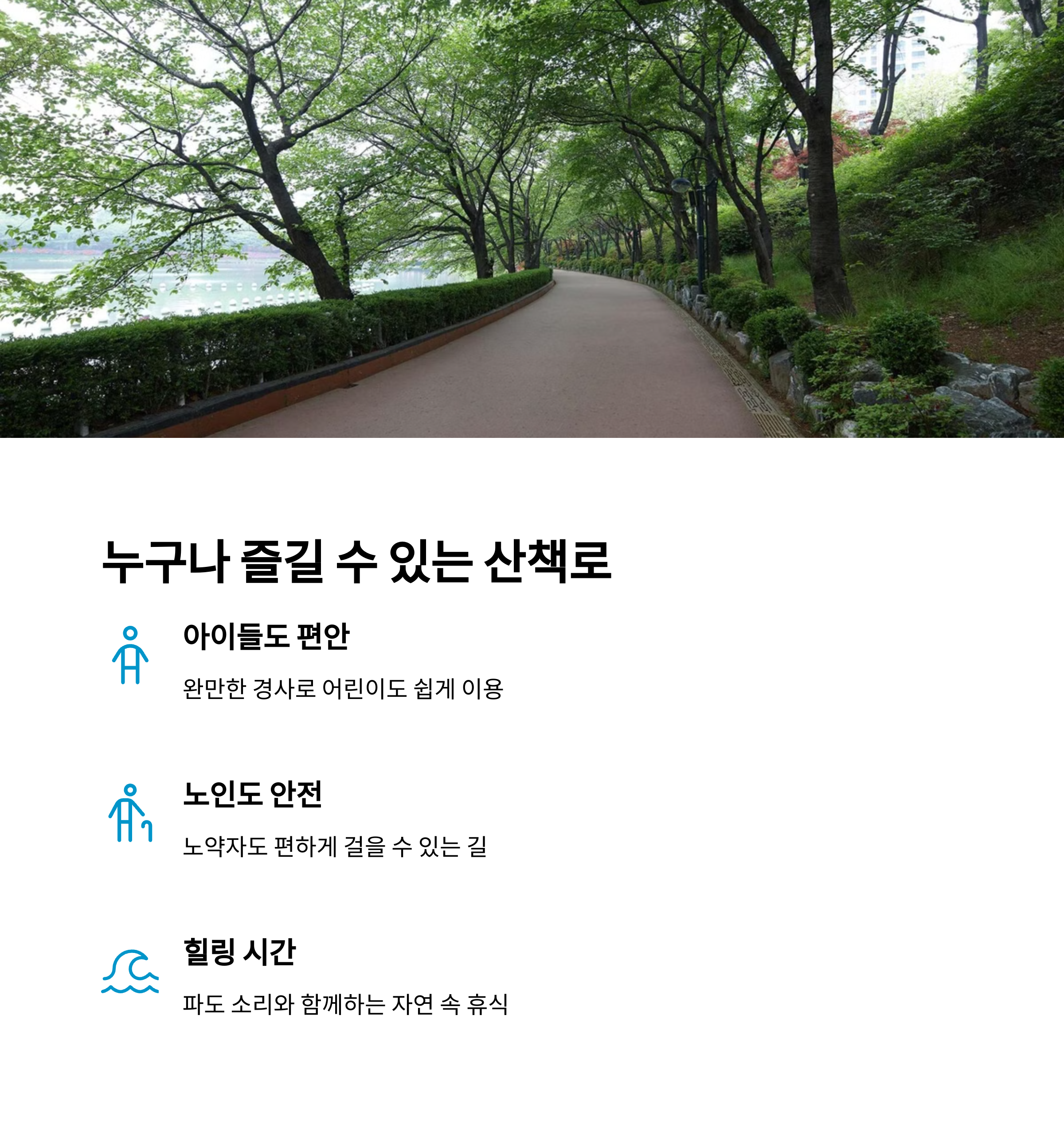 | 조용한 휴식형 숙소 | 완만한 경사로 누구나 이용 가능 | 숙소+산책 추천 루트 |