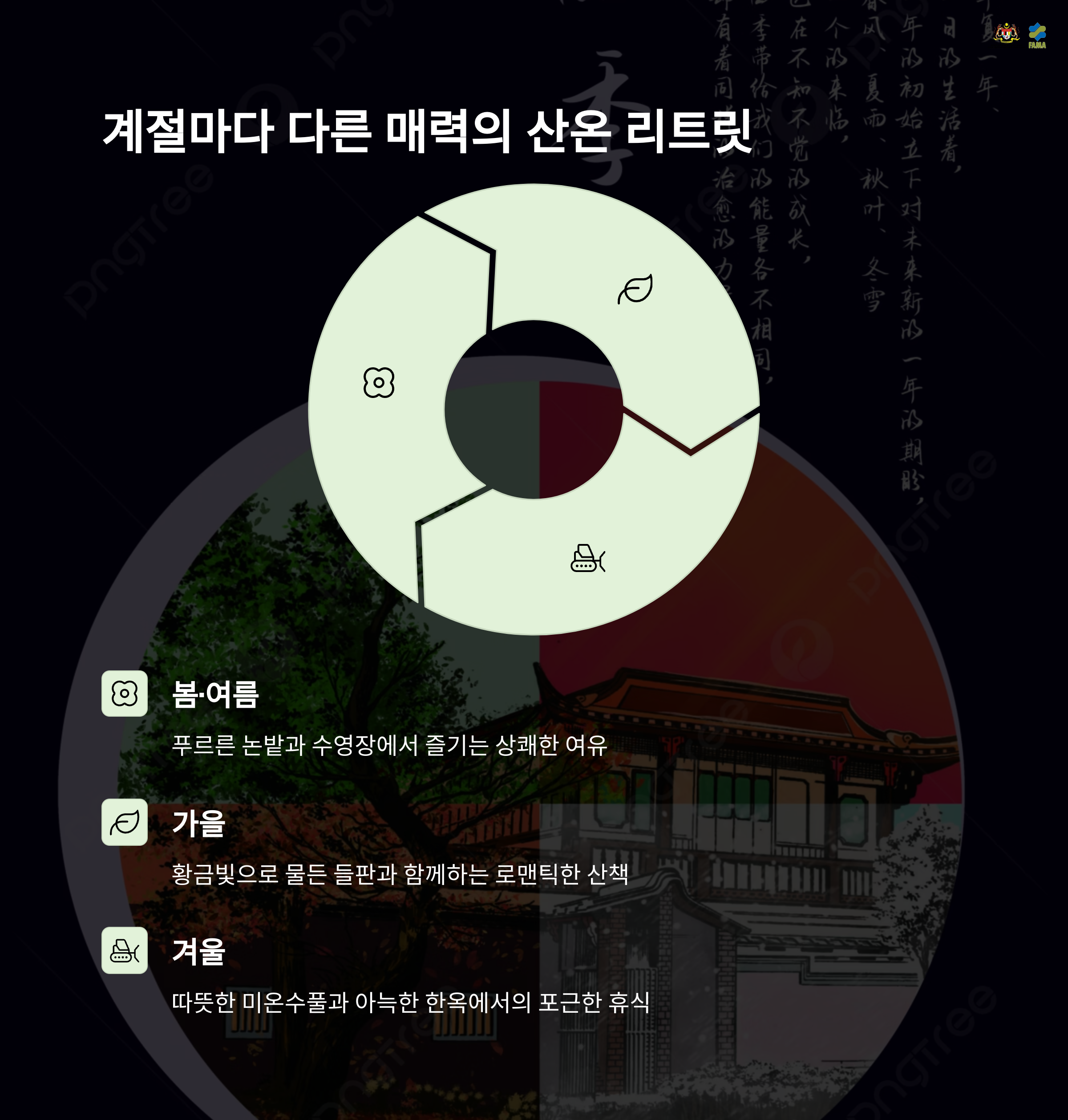 안동의 자연과 한옥의 감성을 고스란히 느낄 수 있는 산온 리트릿은 일상의 번잡함을 잠시 내려놓고 조용한 힐링을 원하는 분들에게 최고의 선택이 될 것입니다. 감각적인 공간 구성, 세심한 배려가 깃든 인테리어, 그리고 자연과 하나되는 시간은 단순한 숙박을 넘어 진짜 쉼과 회복을 제공합니다. 다음 안동 여행, 특별한 기억을 만들고 싶다면 산온 리트릿을 선택해보세요.
