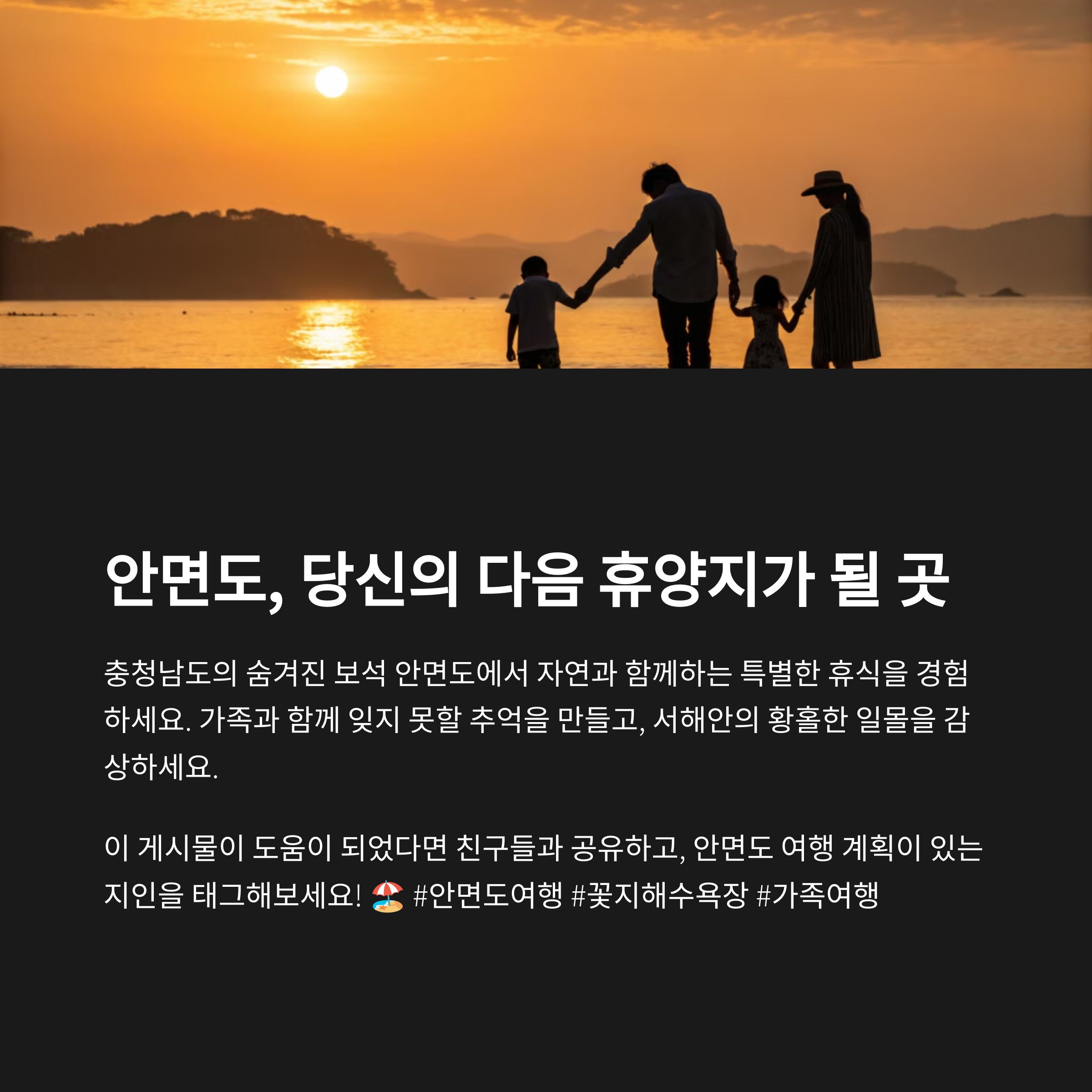 이번 포스팅에서는 안면도에서 추천하는 호텔과 꽃지해수욕장 여행 가이드를 소개해 드립니다. 가족, 연인, 친구와 함께 떠나는 안면도 여행을 계획해보세요!