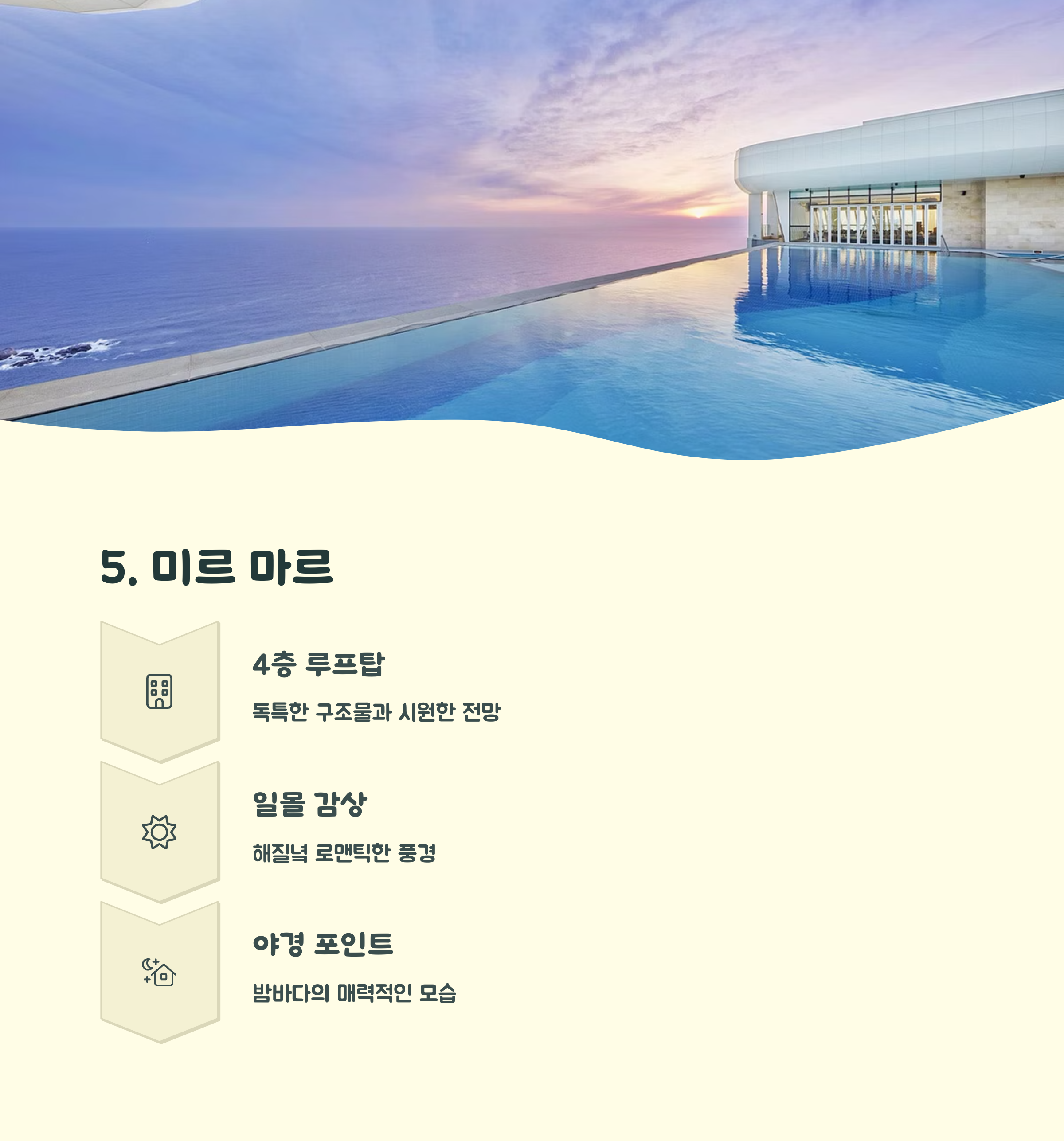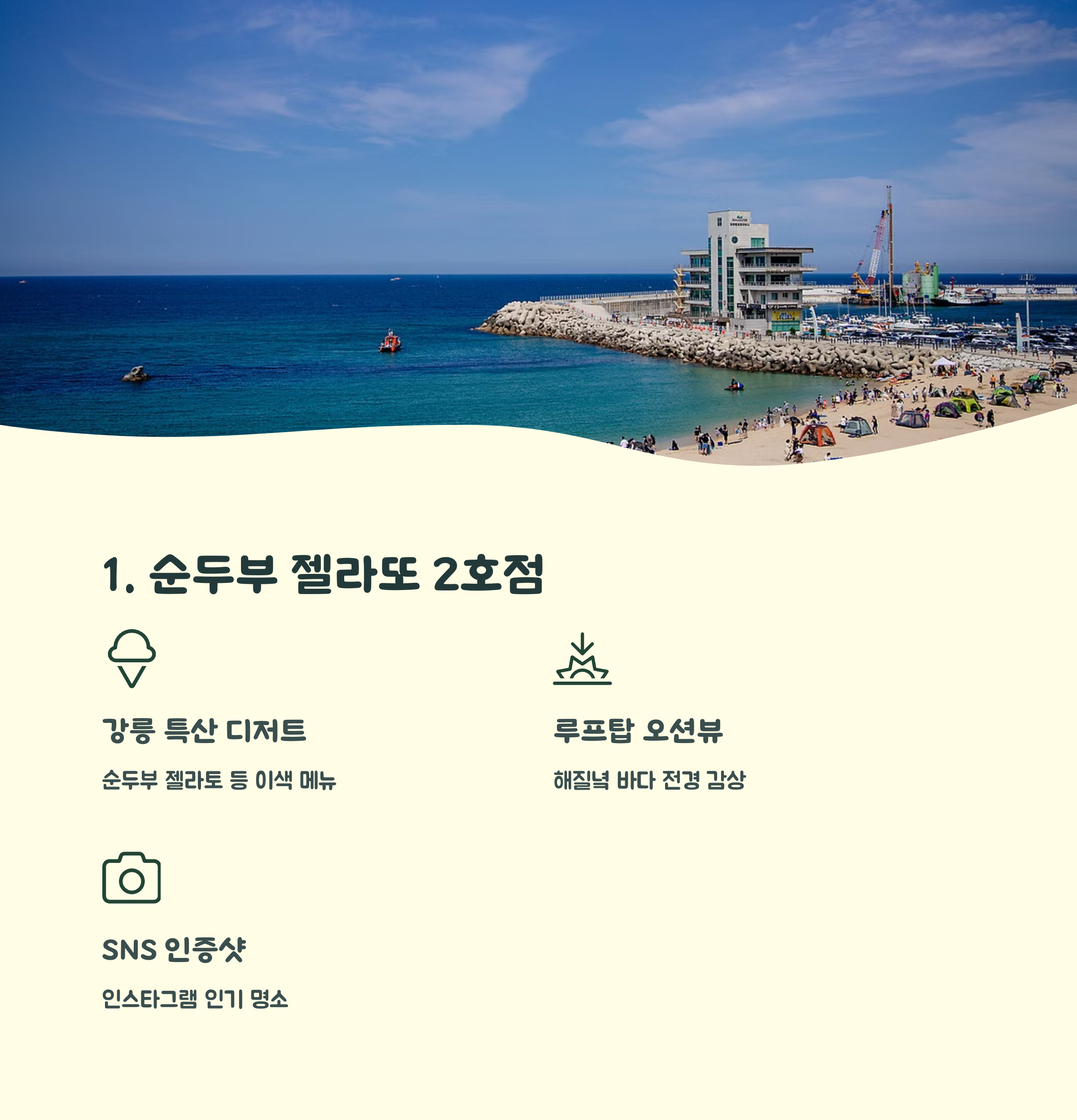 | 해변 산책과 함께 즐기기 좋은 디저트 카페 | 혼자 여행하는 이들에게도 안성맞춤 | 감성 사진과 분위기를 모두 담을 수 있는 곳 |
